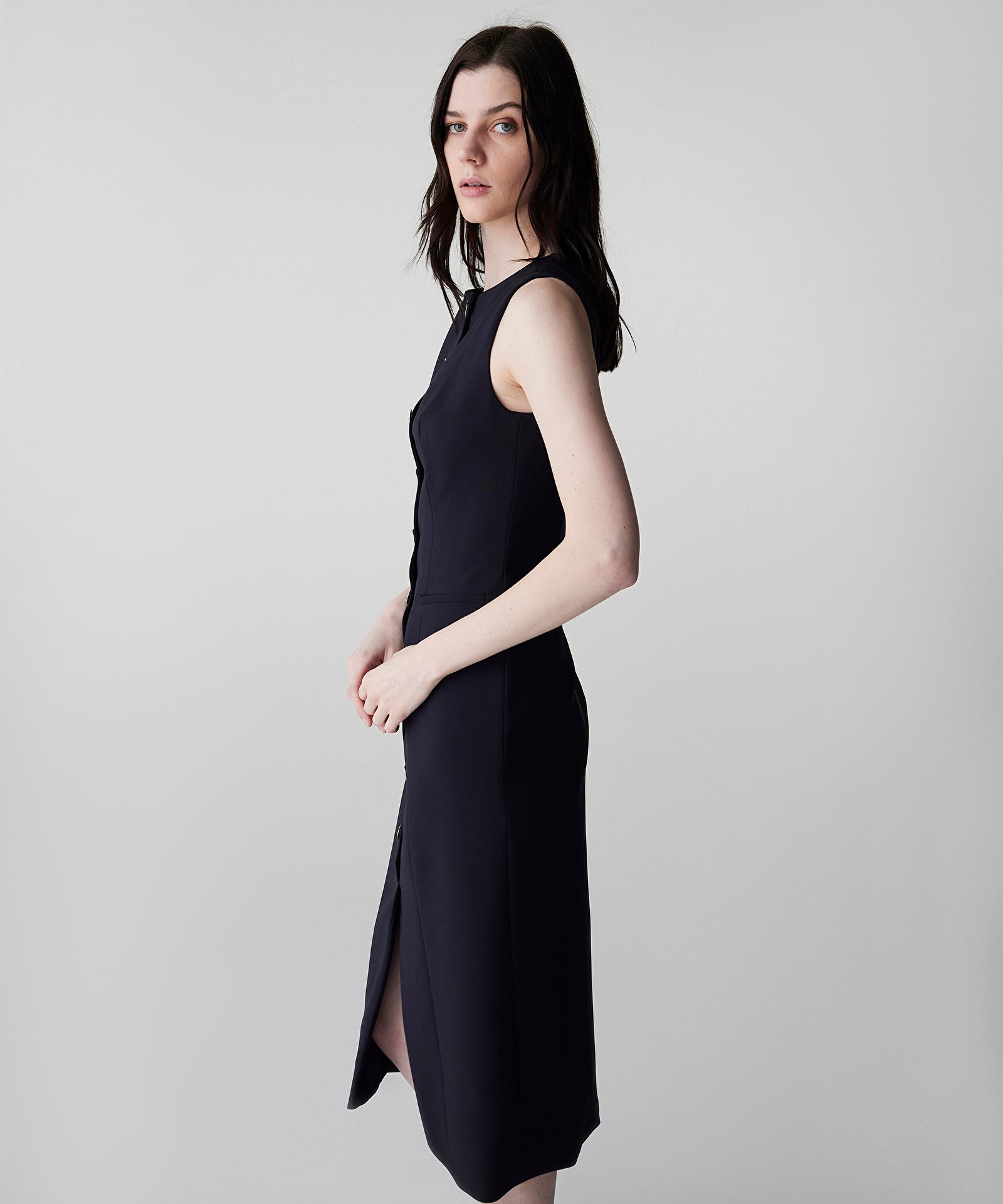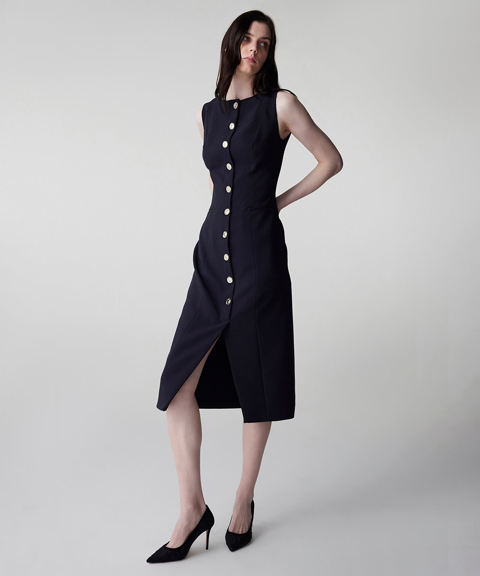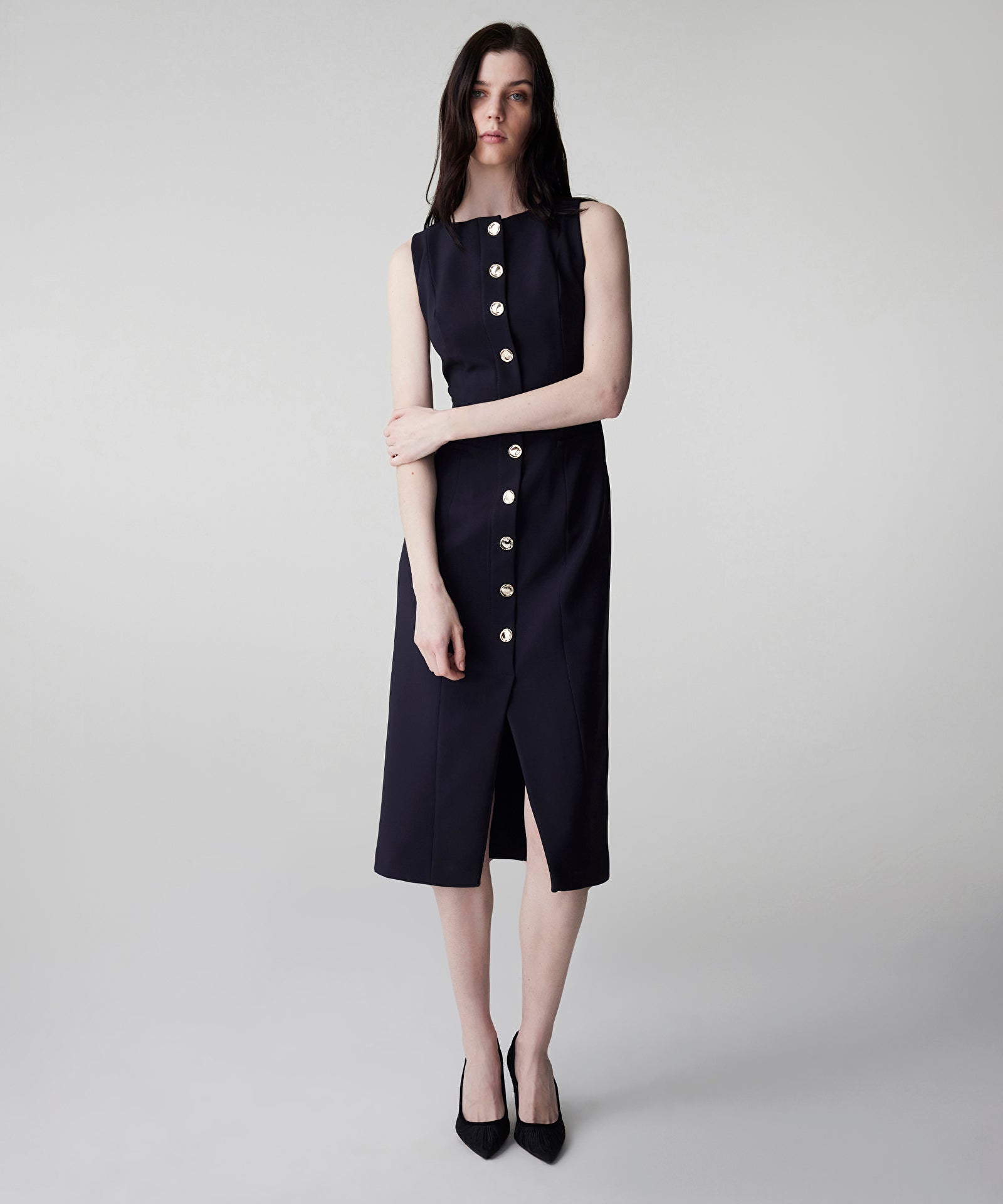 Metal Düğme Aksesuarlı Elbise