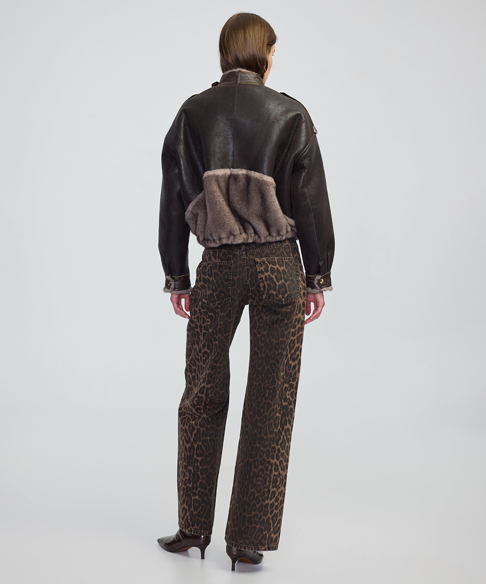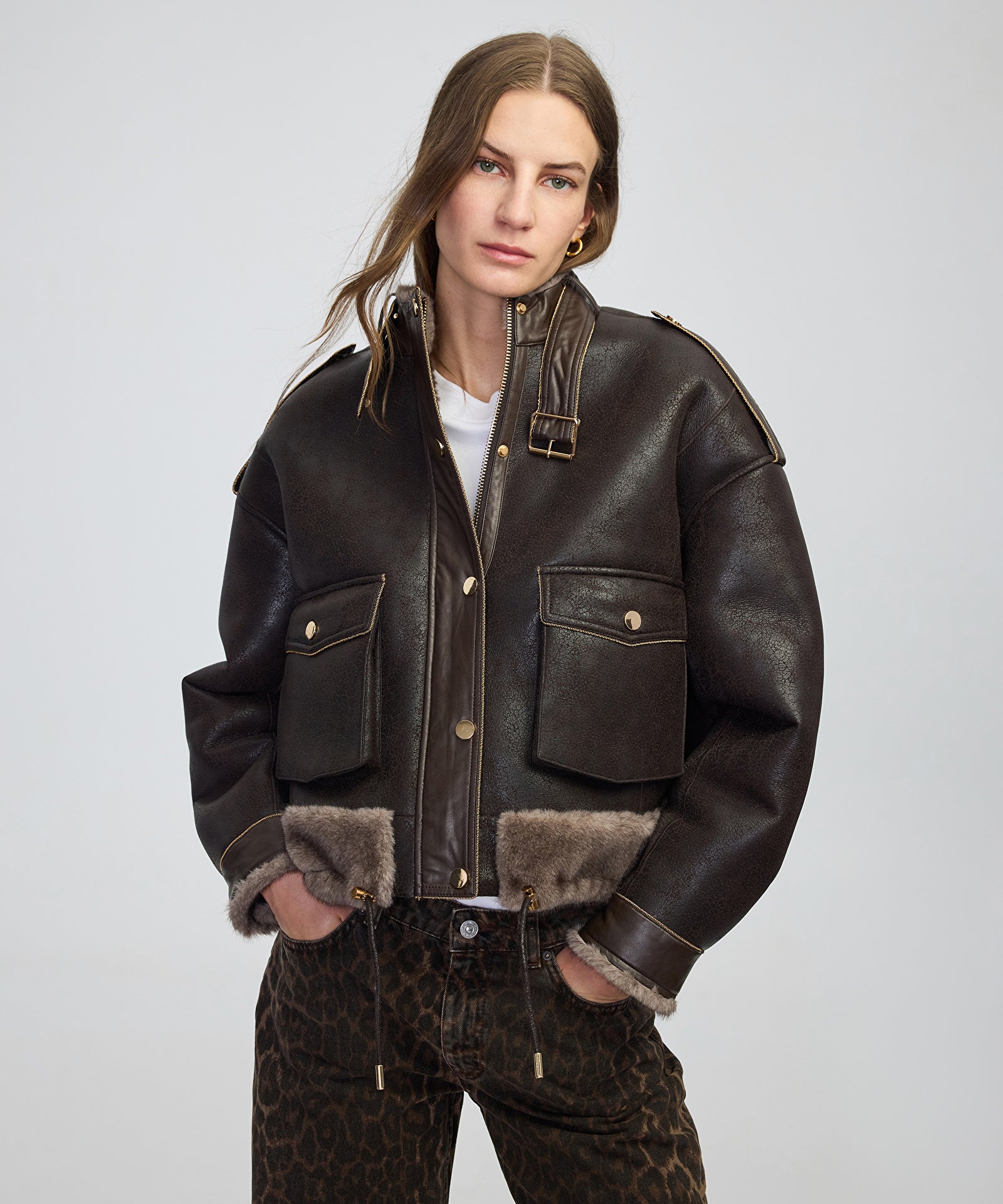 Zincir Biyeli Suni Kürk Ve Deri Mix Mont
