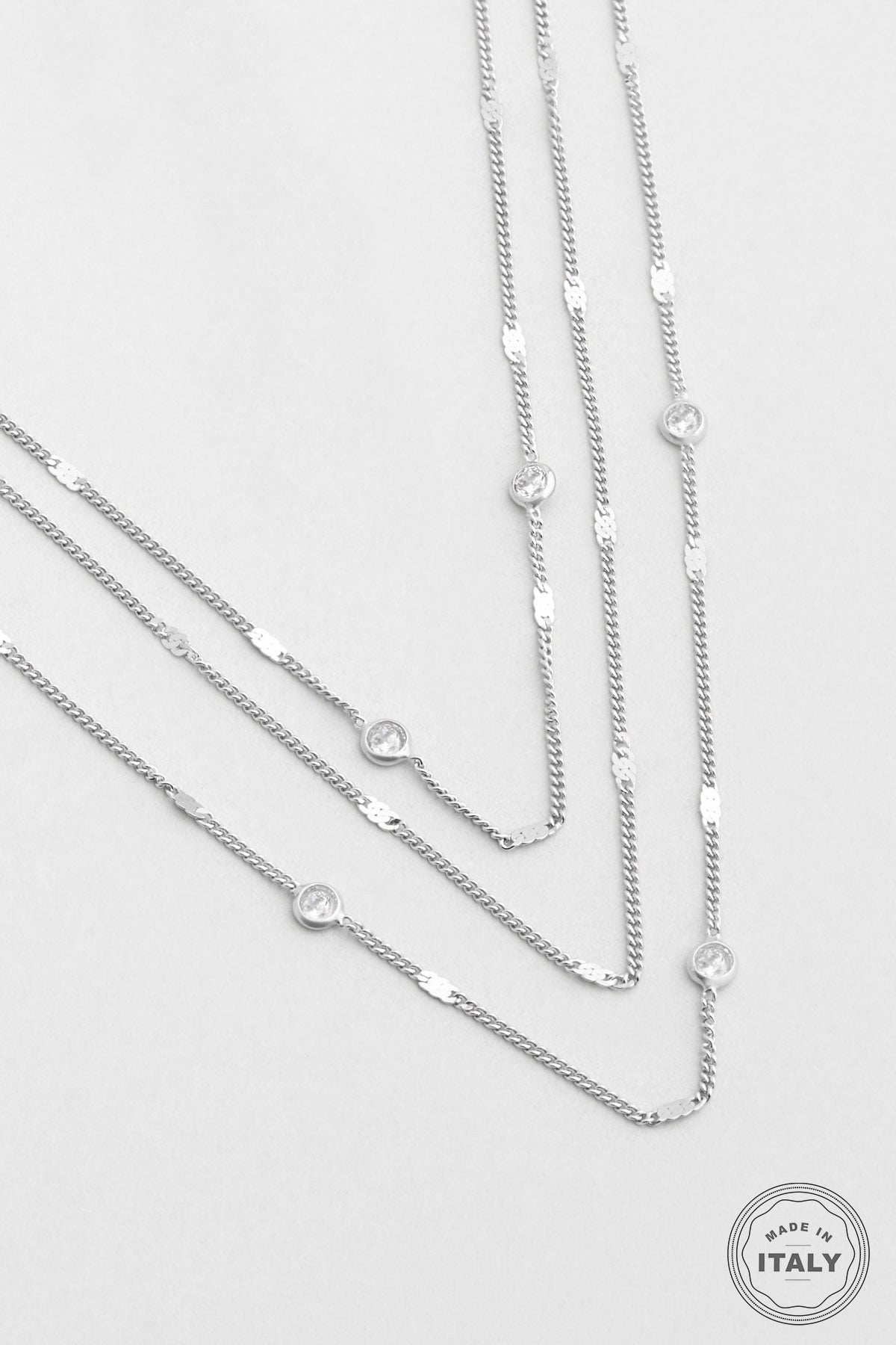 Italyan Minimalist 18 Ayar Beyaz Altın Kaplama Gümüş Üçlü Kolye 5109230199