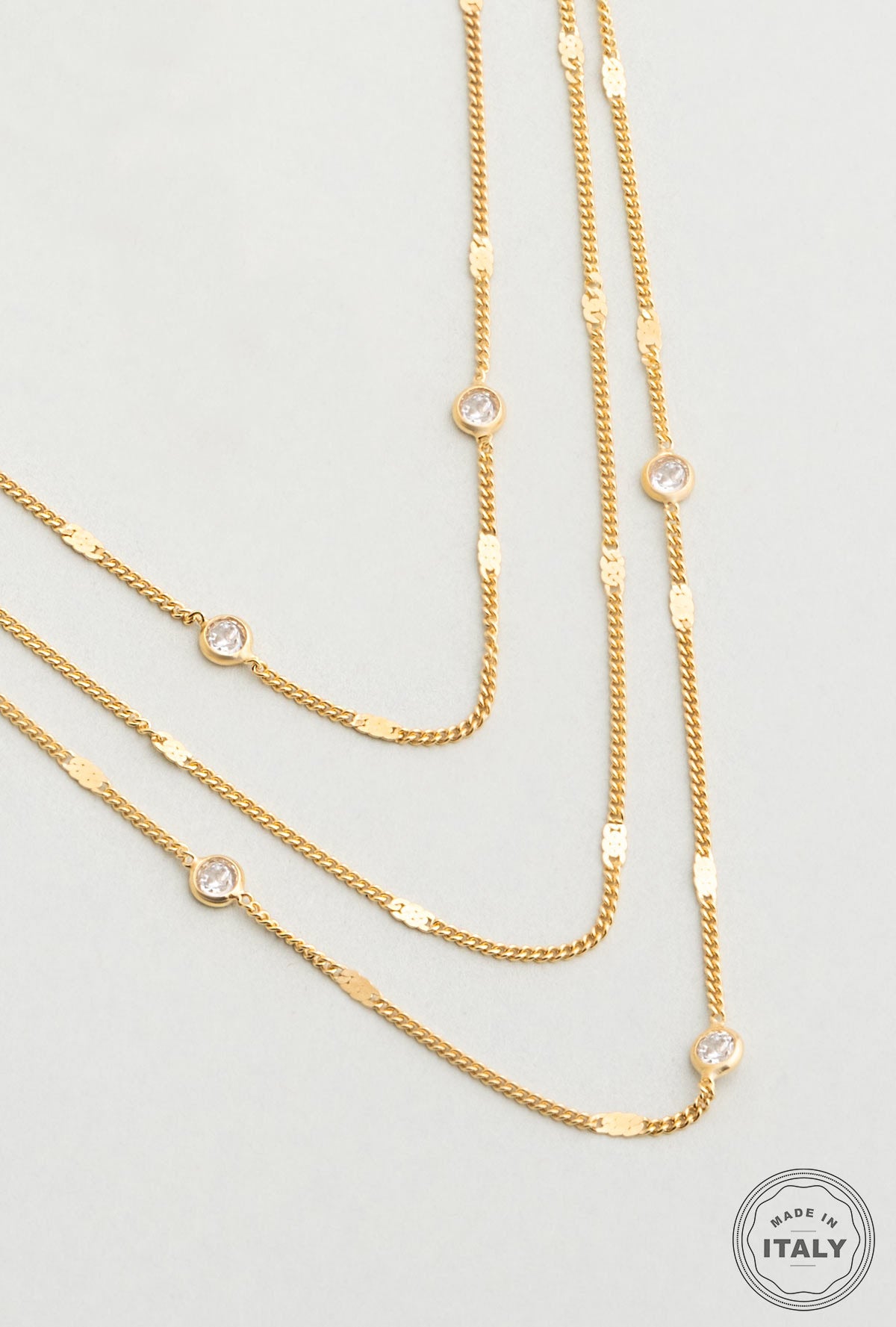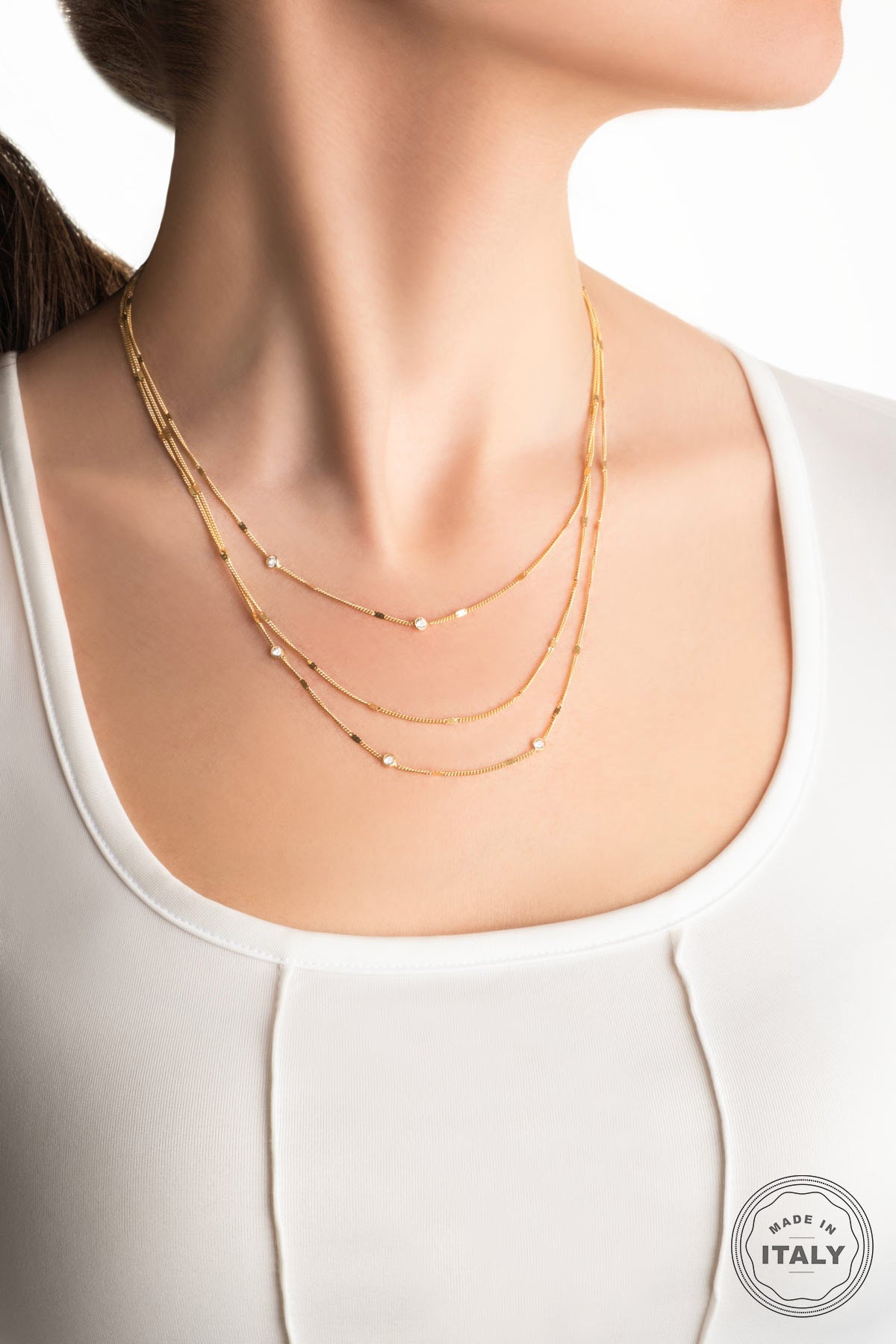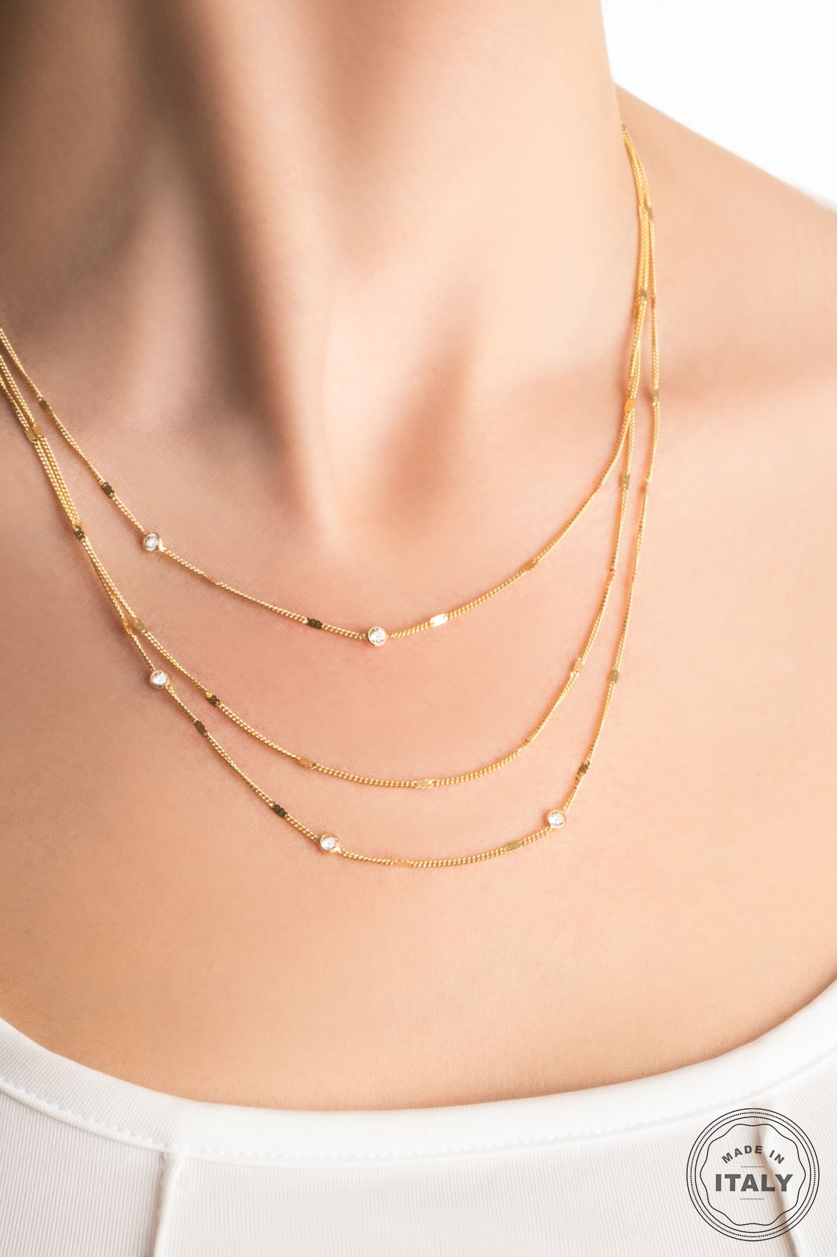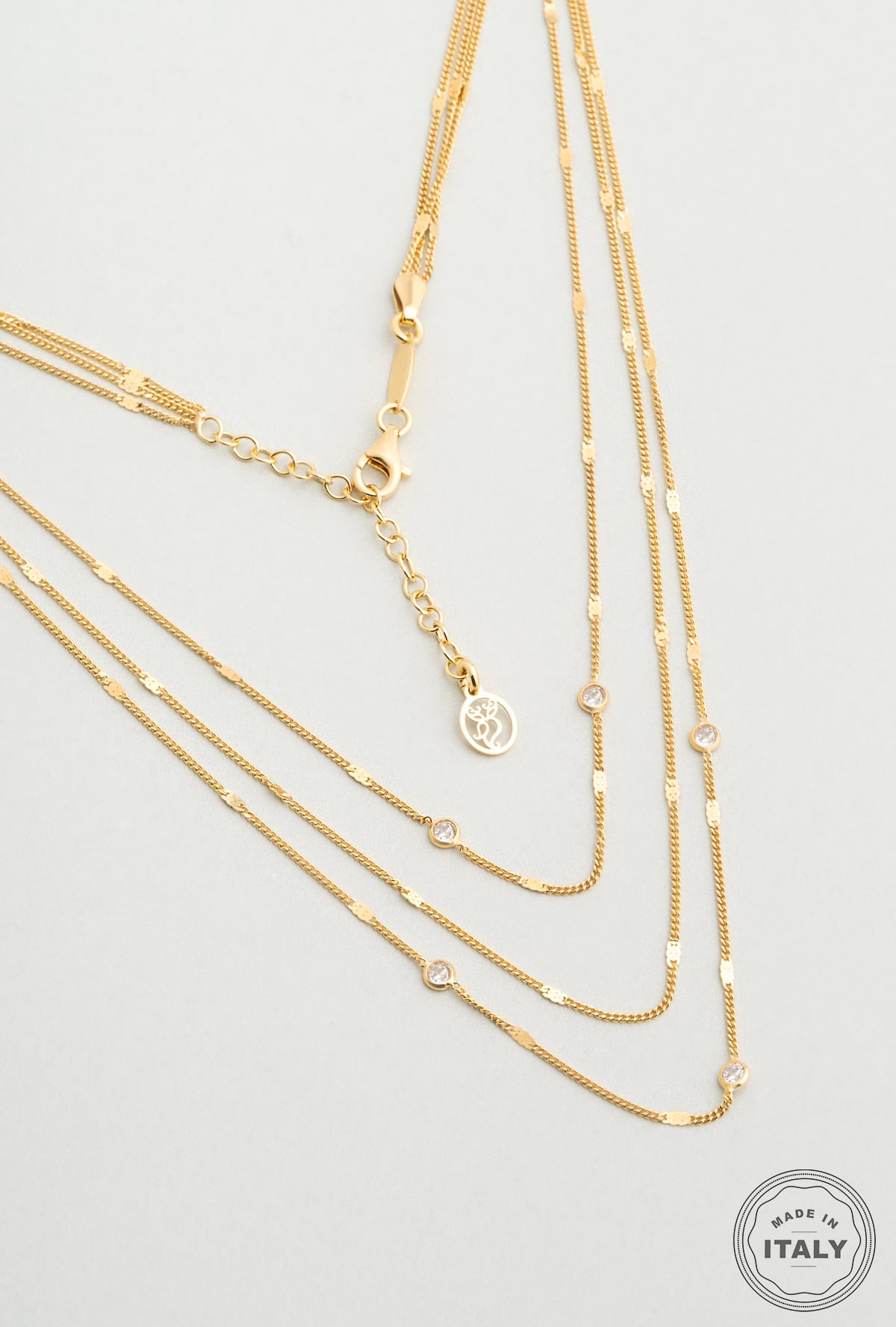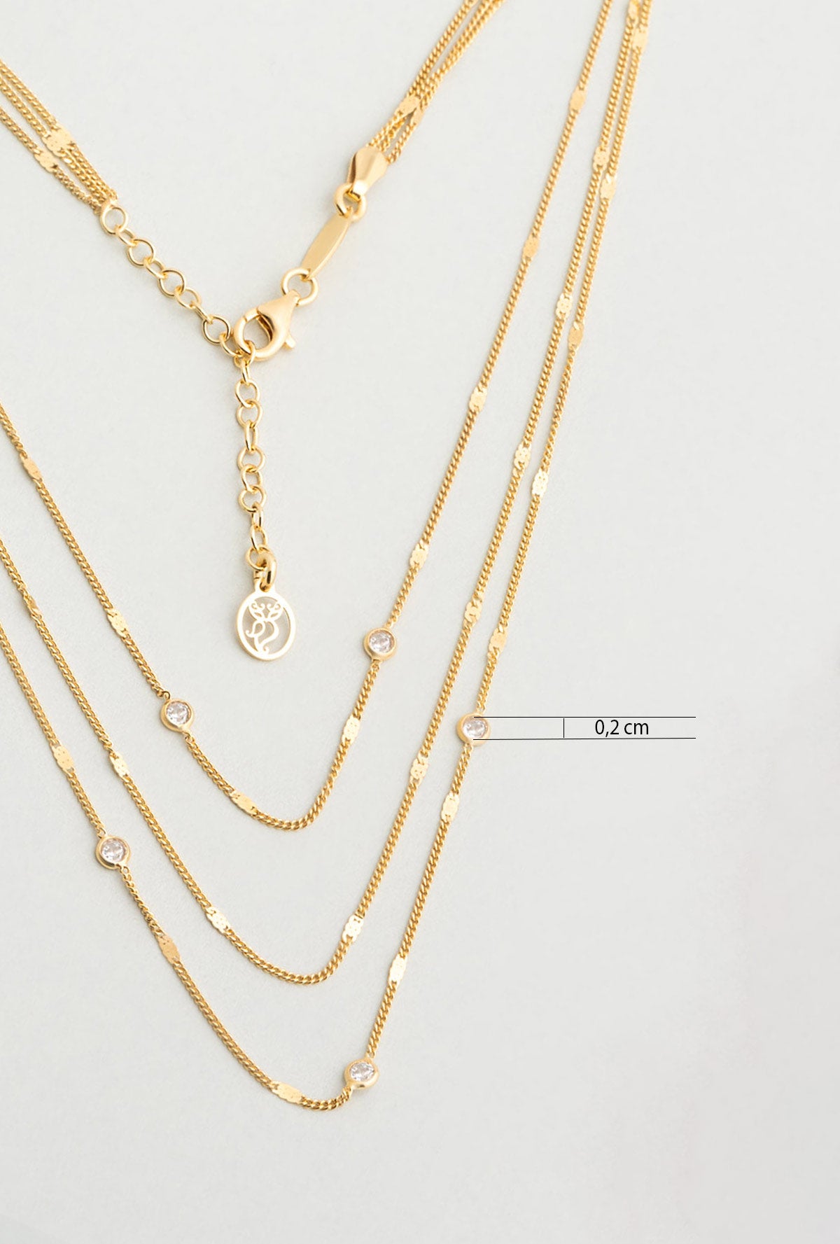 Italyan Minimalist 18 Ayar Sarı Altın Kaplama Gümüş Üçlü Kolye 5109230144