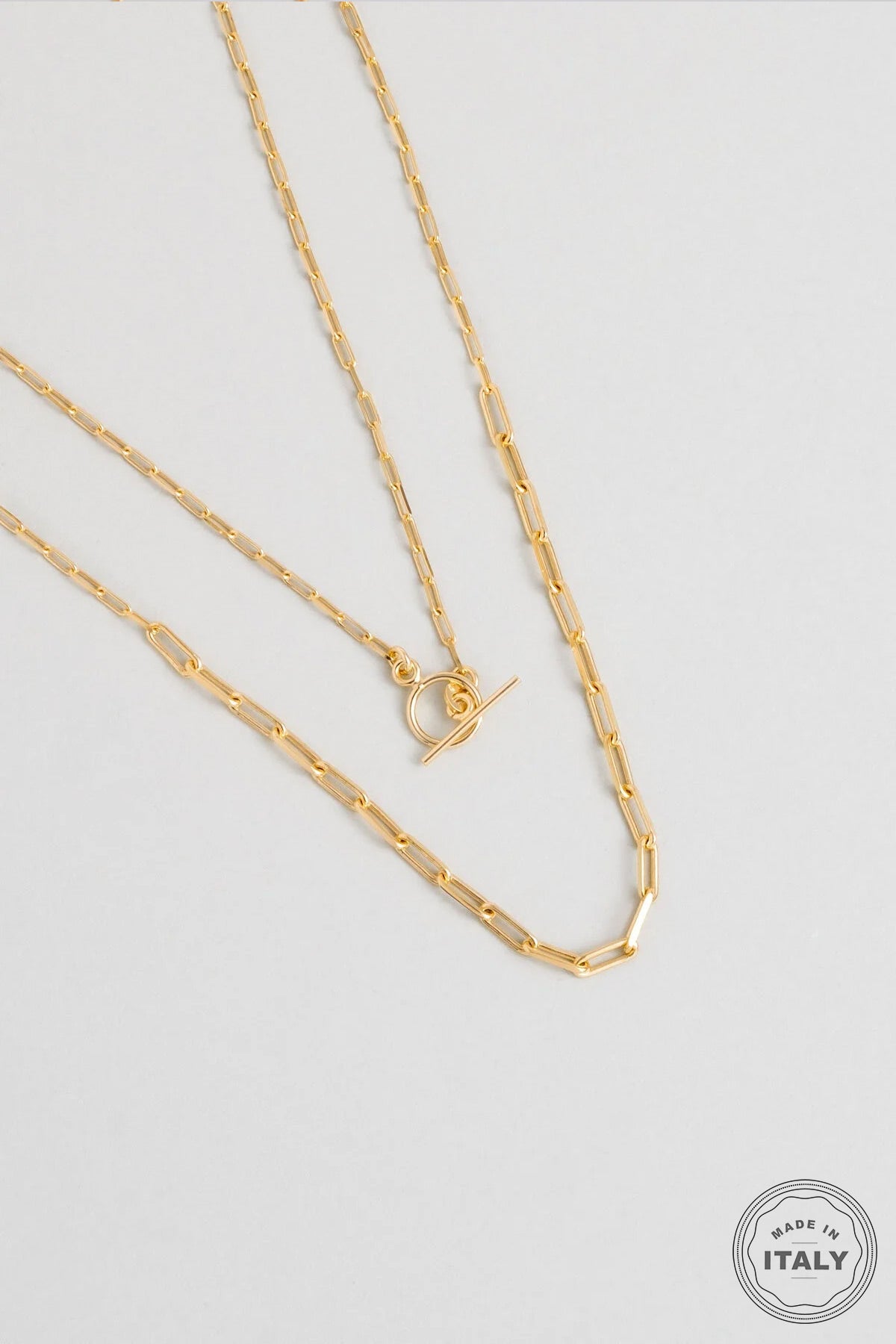 Italyan T Kilit 18 Ayar Sarı Altın Kaplama 45 Cm Gümüş Zincir Kolye 5167494499