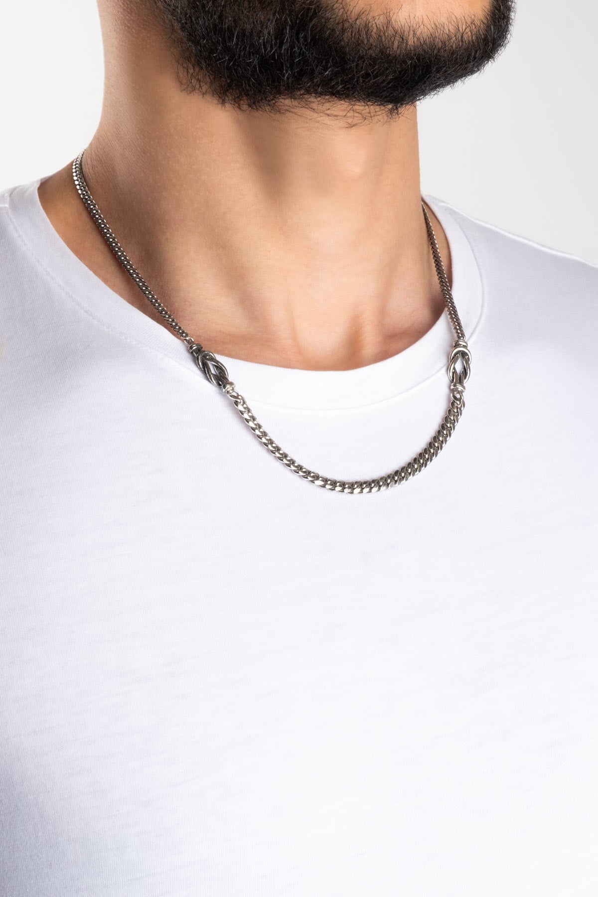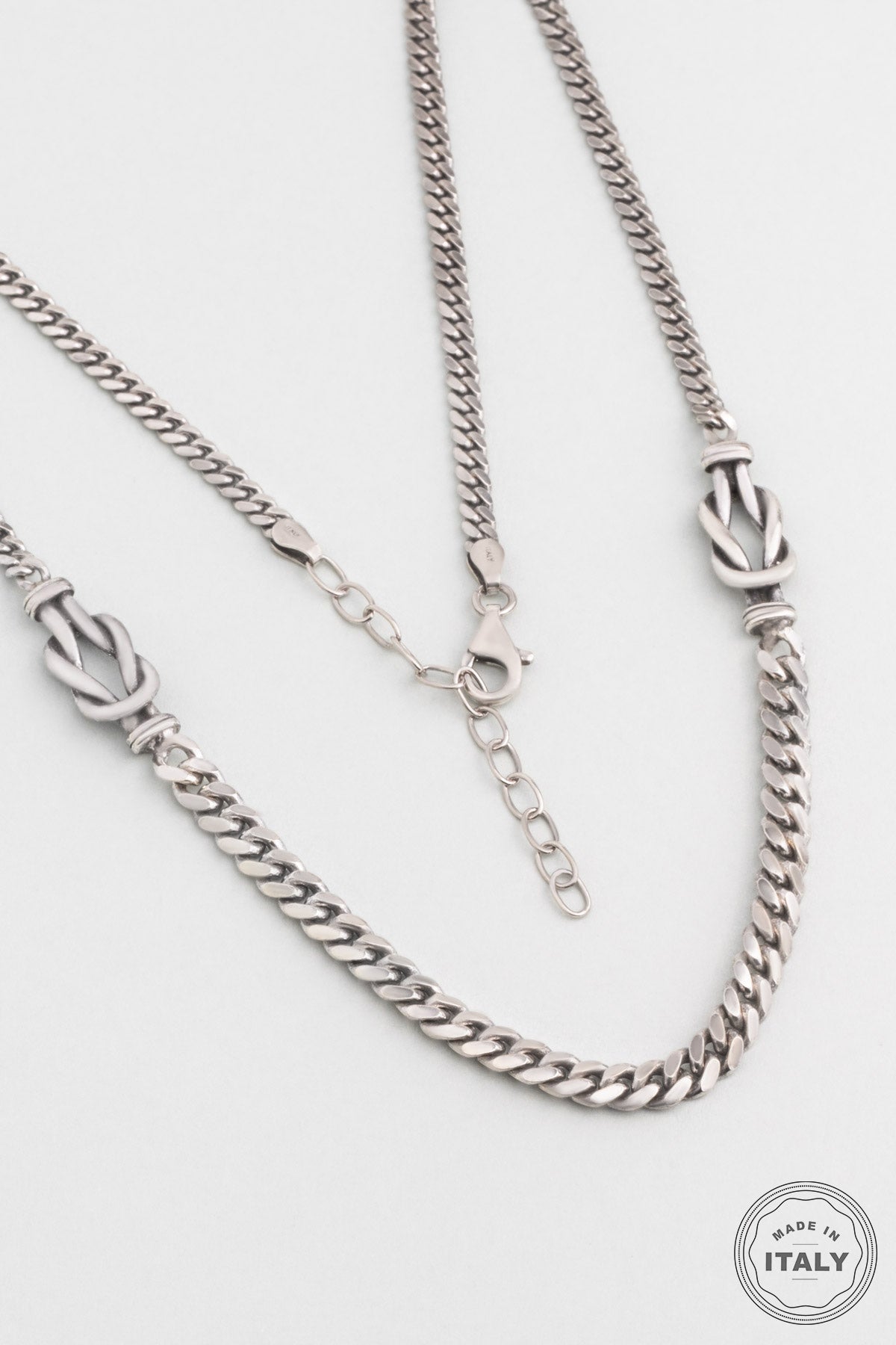 Italyan Tasarım Düğüm Detaylı 55 Cm Gümüş Erkek Kolye 5160514299