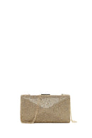 Kadın Altın Uzun Askılı Taşlı Mini Portföy Çanta
