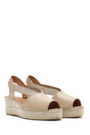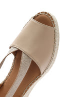 Kadın Bej Dolgu Topuklu Deri Espadril Sandalet