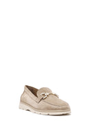 Kadın Bej Toka Detaylı Süet Deri Comfort Loafer