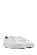 Kadın Beyaz Bağcıklı Deri Sneaker