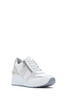 Kadın Beyaz Dolgu Topuklu Yandan Fermuarlı Deri Sneaker