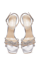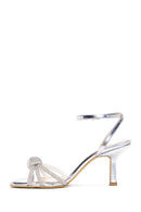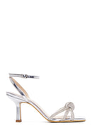 Kadın Gümüş Bilekten Tokalı Taşlı Ince Topuklu Sandalet