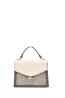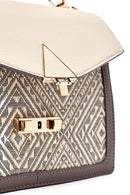 Kadın Krem Uzun Askılı Desenli Kol Çantası