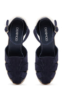 Kadın Lacivert Bilekten Bantlı Dolgu Topuklu Süet Deri Espadril Sandalet
