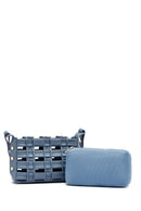 Kadın Mavi Uzun Askılı Örgü Çapraz Çanta