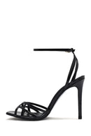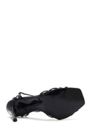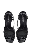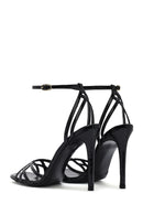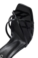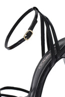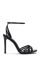 Kadın Siyah Bilekten Bağlamalı Ince Yüksek Topuklu Rugan Deri Sandalet
