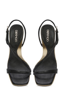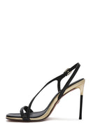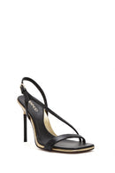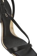 Kadın Siyah Bilekten Bantlı Deri Ince Topuklu Sandalet