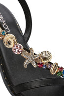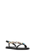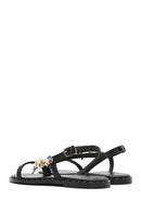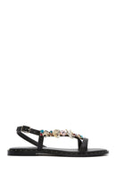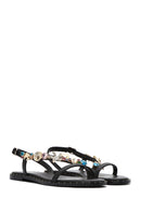 Kadın Siyah Bilekten Tokalı Taşlı Sandalet