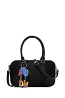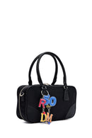 Kadın Siyah Uzun Askılı Aksesuar Detaylı Kumaş Kol Çantası