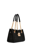 Kadın Siyah Uzun Askılı Baskılı Omuz Çantası