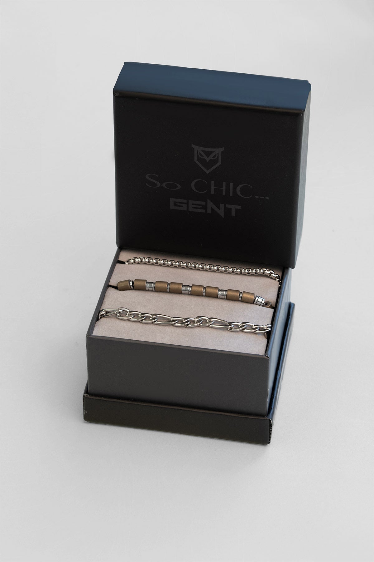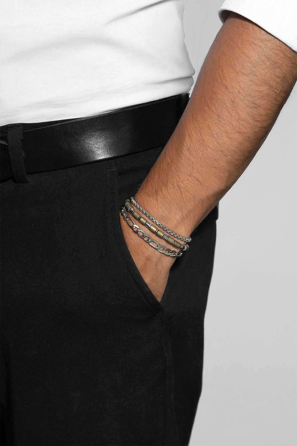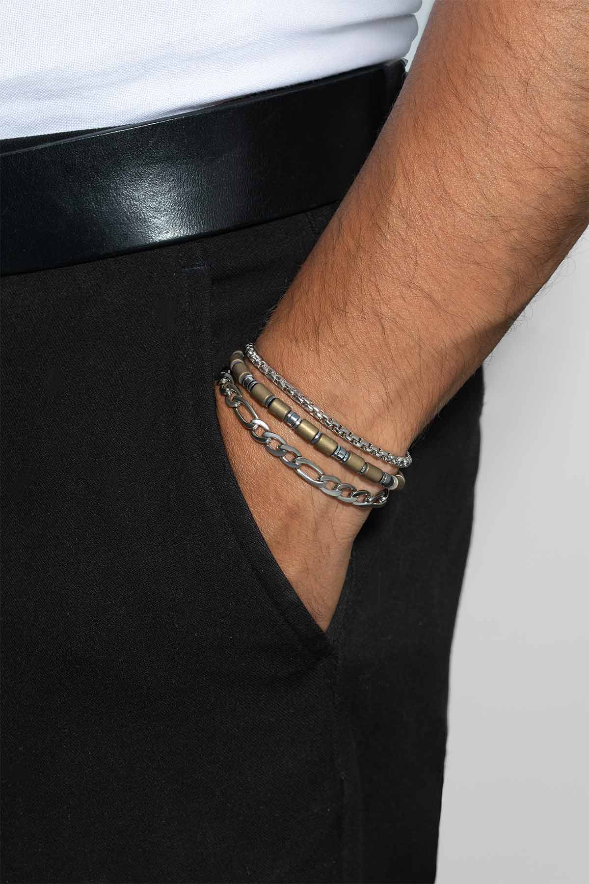 Kahverengi Hematit Taşlı Ayarlanabilir Erkek Çelik Üçlü Bileklik Seti 02441421199