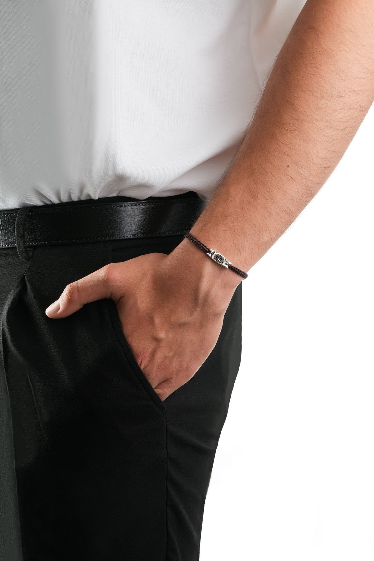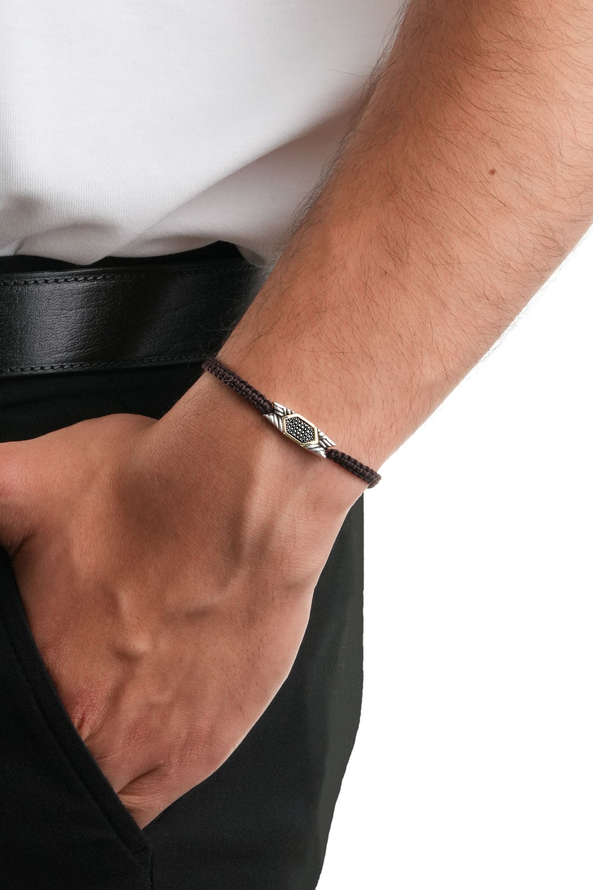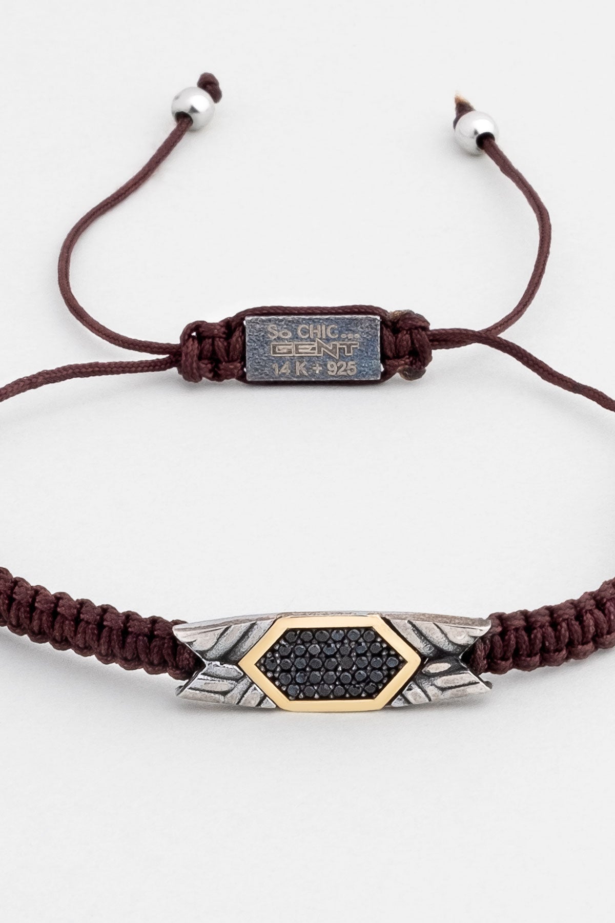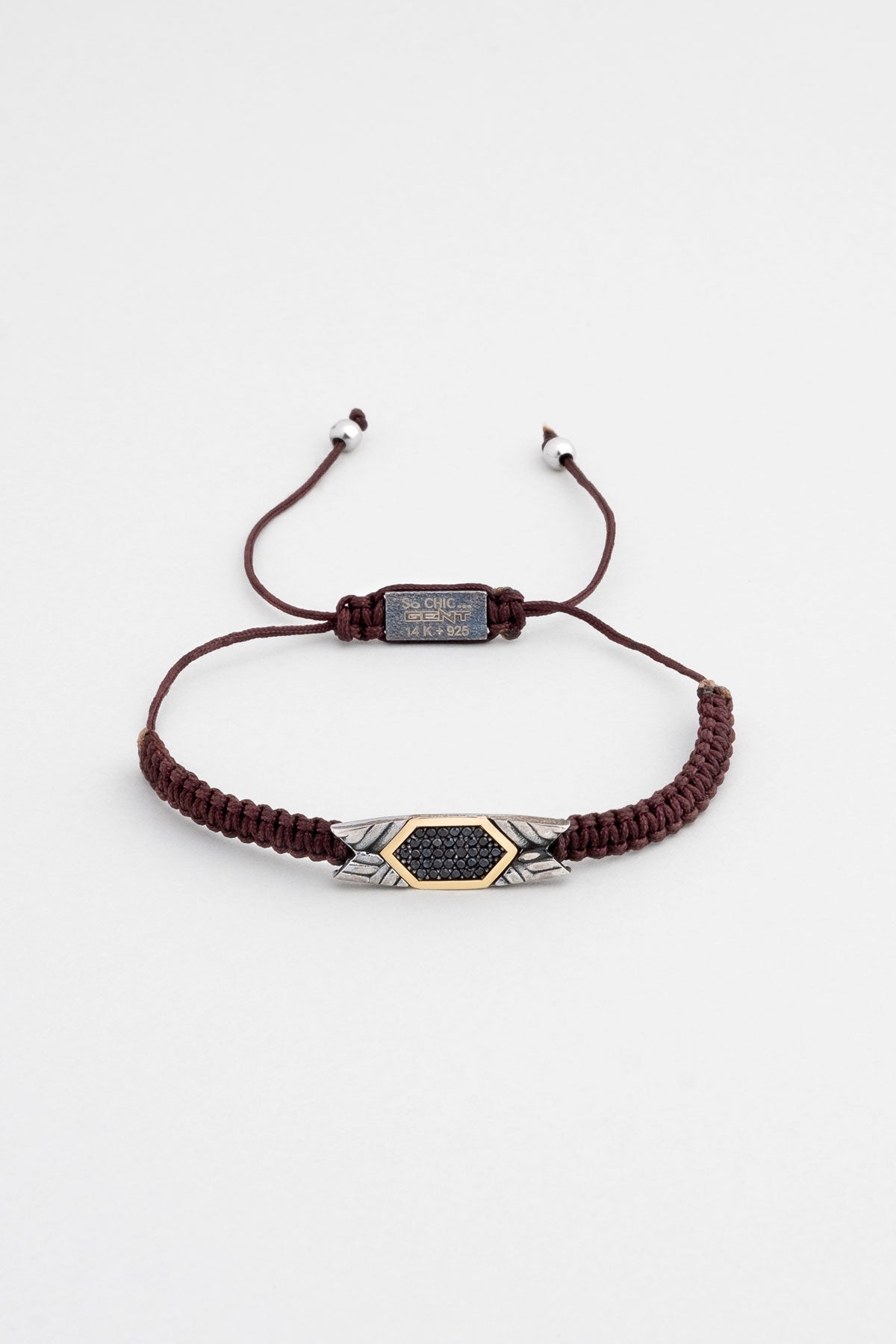 Kahverengi Ipli 14 Ayar Altın Erkek Gümüş Ipli Bileklik 07295101199