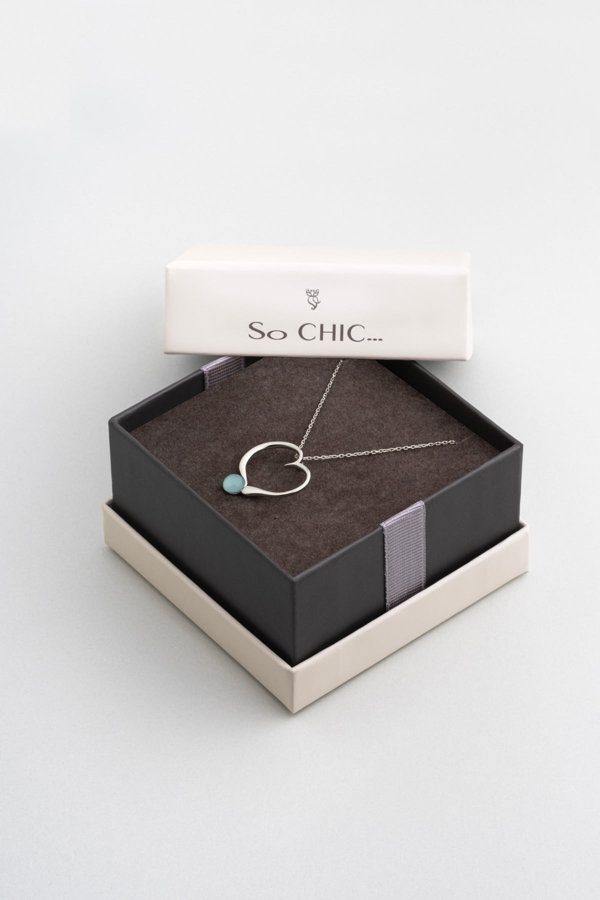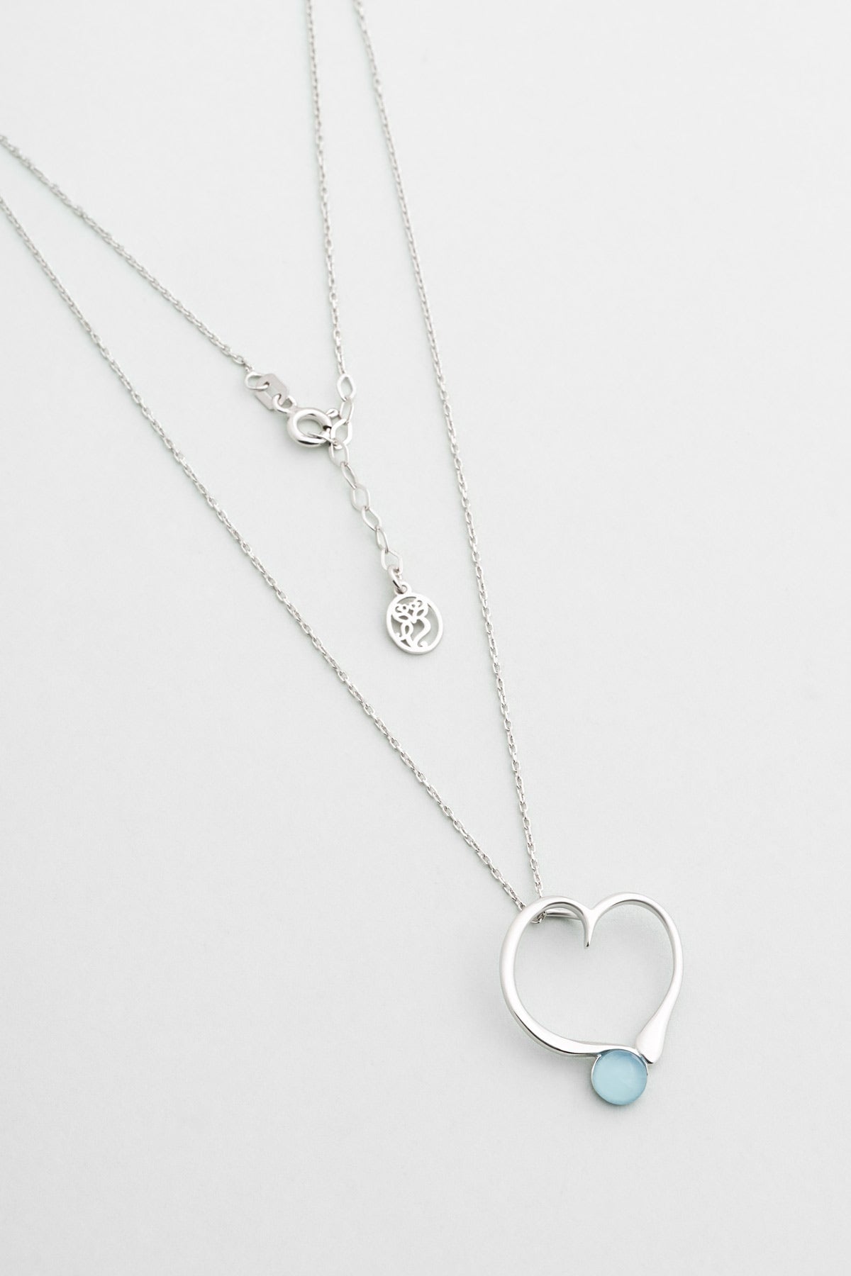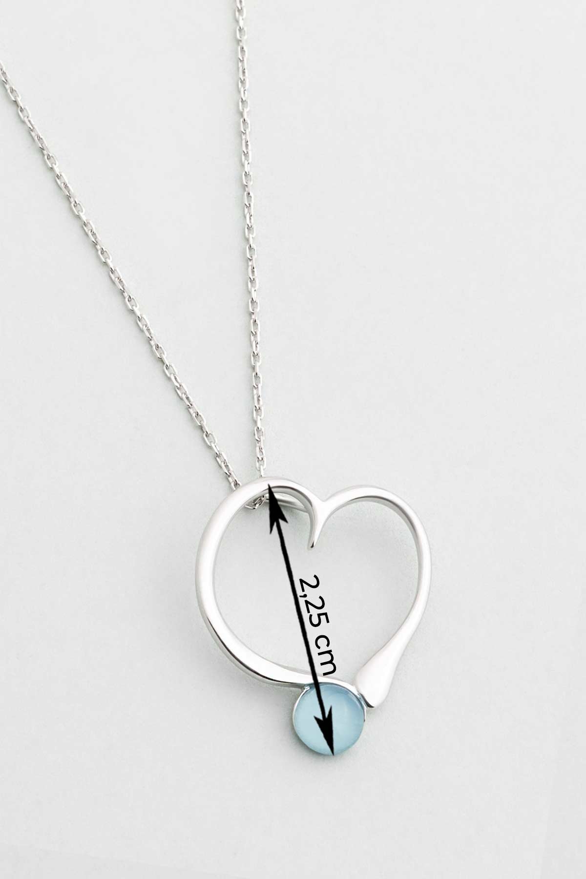 Kalsedon Kalbi 18 Ayar Beyaz Altın Kaplama 42 Cm Gümüş Kolye 07314090599