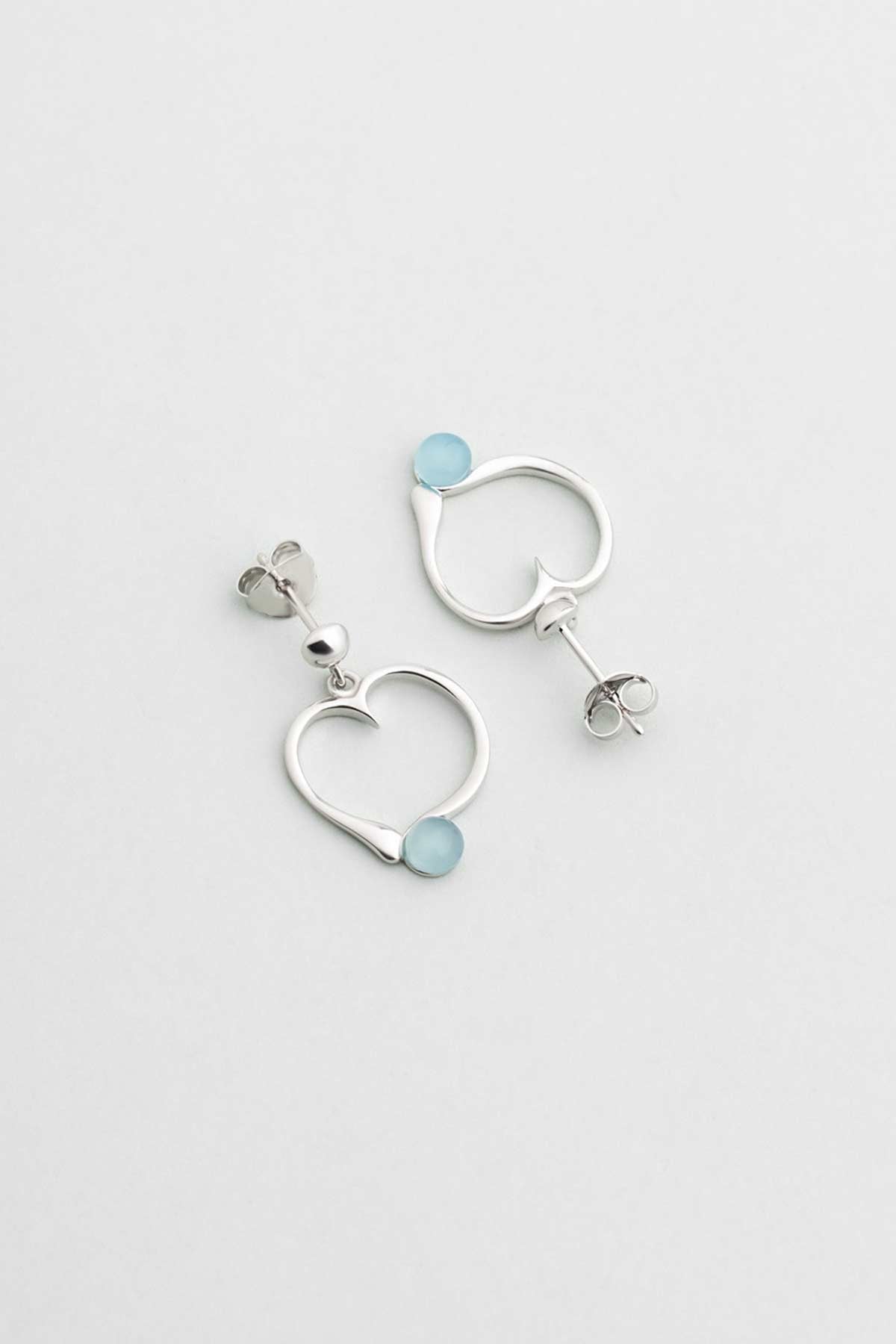 Kalsedon Kalbi 18 Ayar Beyaz Altın Kaplama Gümüş Küpe 07314080599