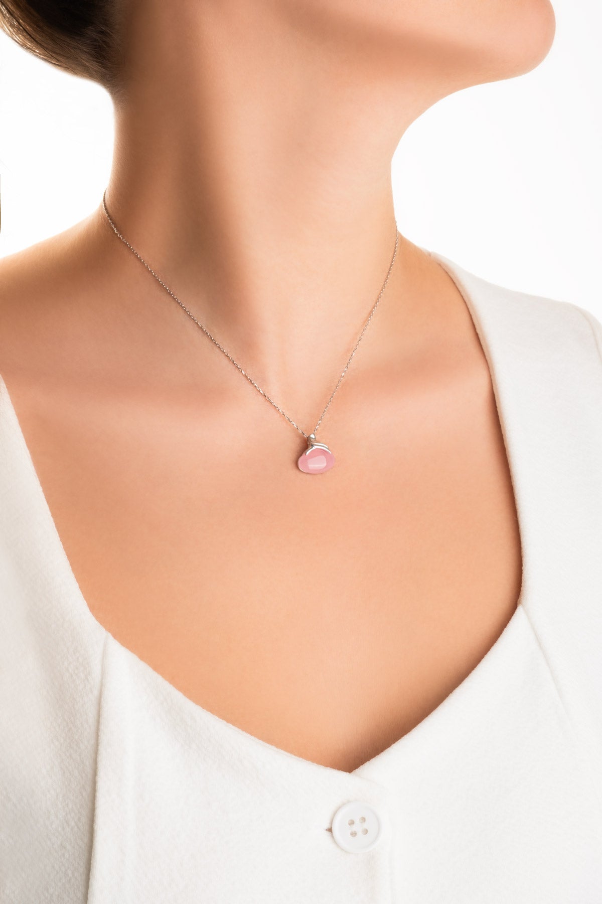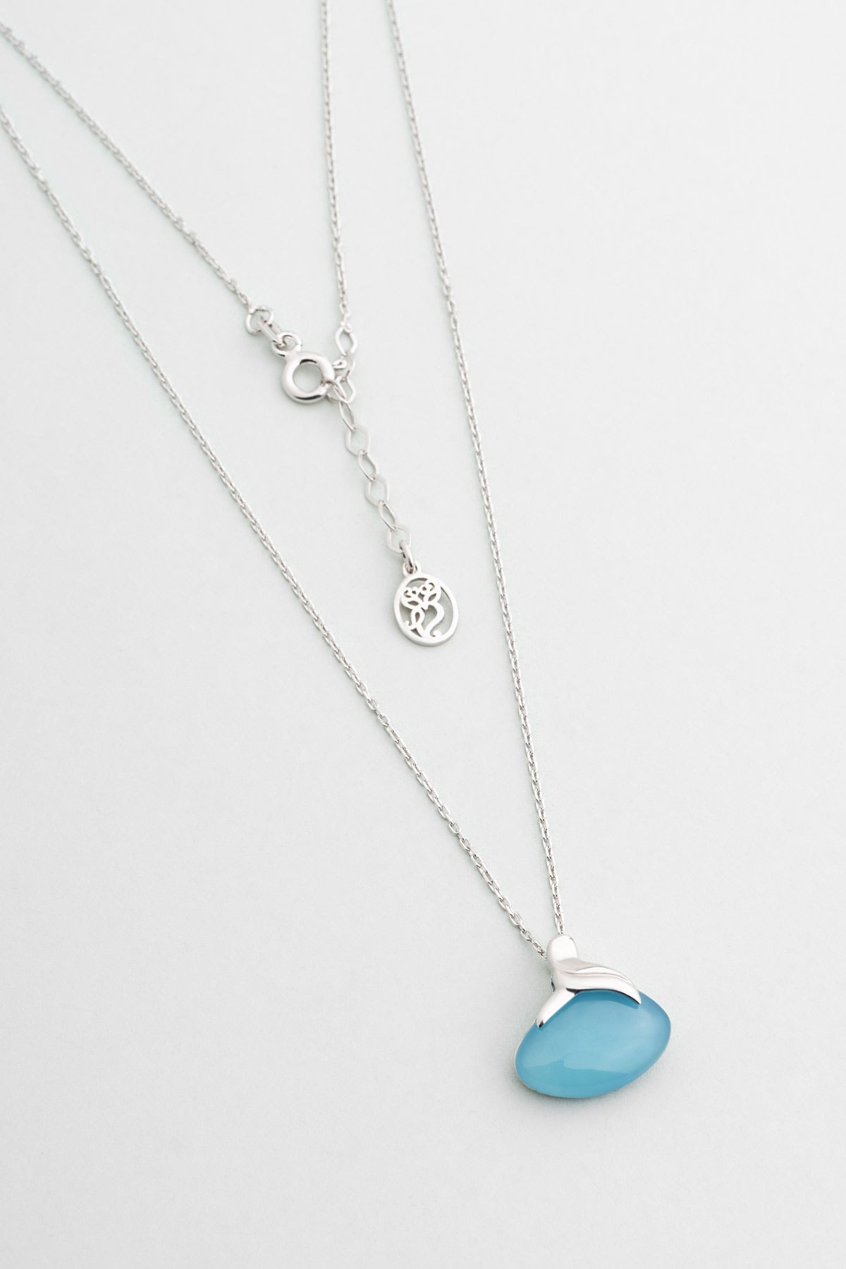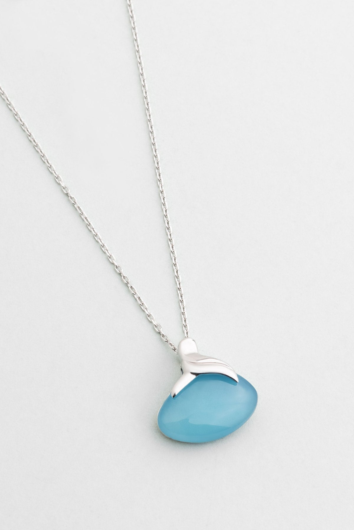 Kalsedon Taşlı 18 Ayar Beyaz Altın Kaplama 42 Cm Gümüş Kolye 07314250599