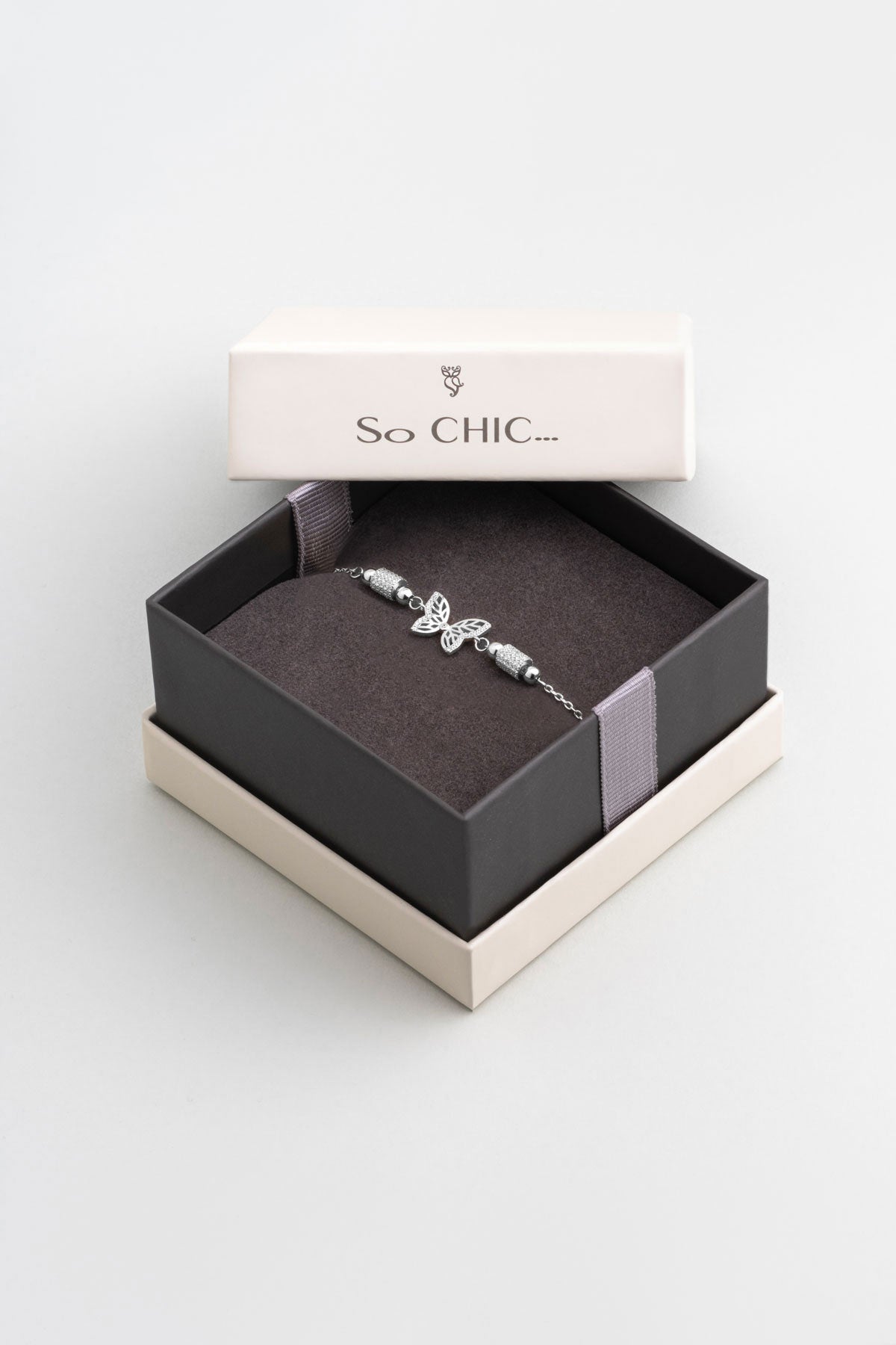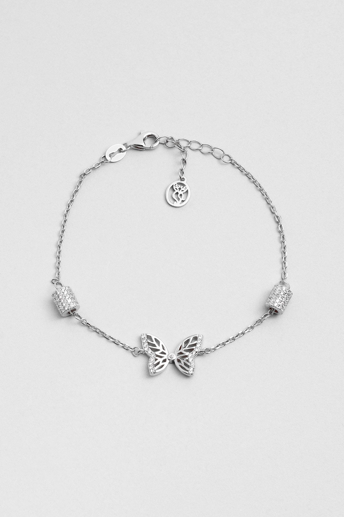 Kelebek Etkisi 18 Ayar Beyaz Altın Kaplama 18 Cm Gümüş Bileklik 5167150199