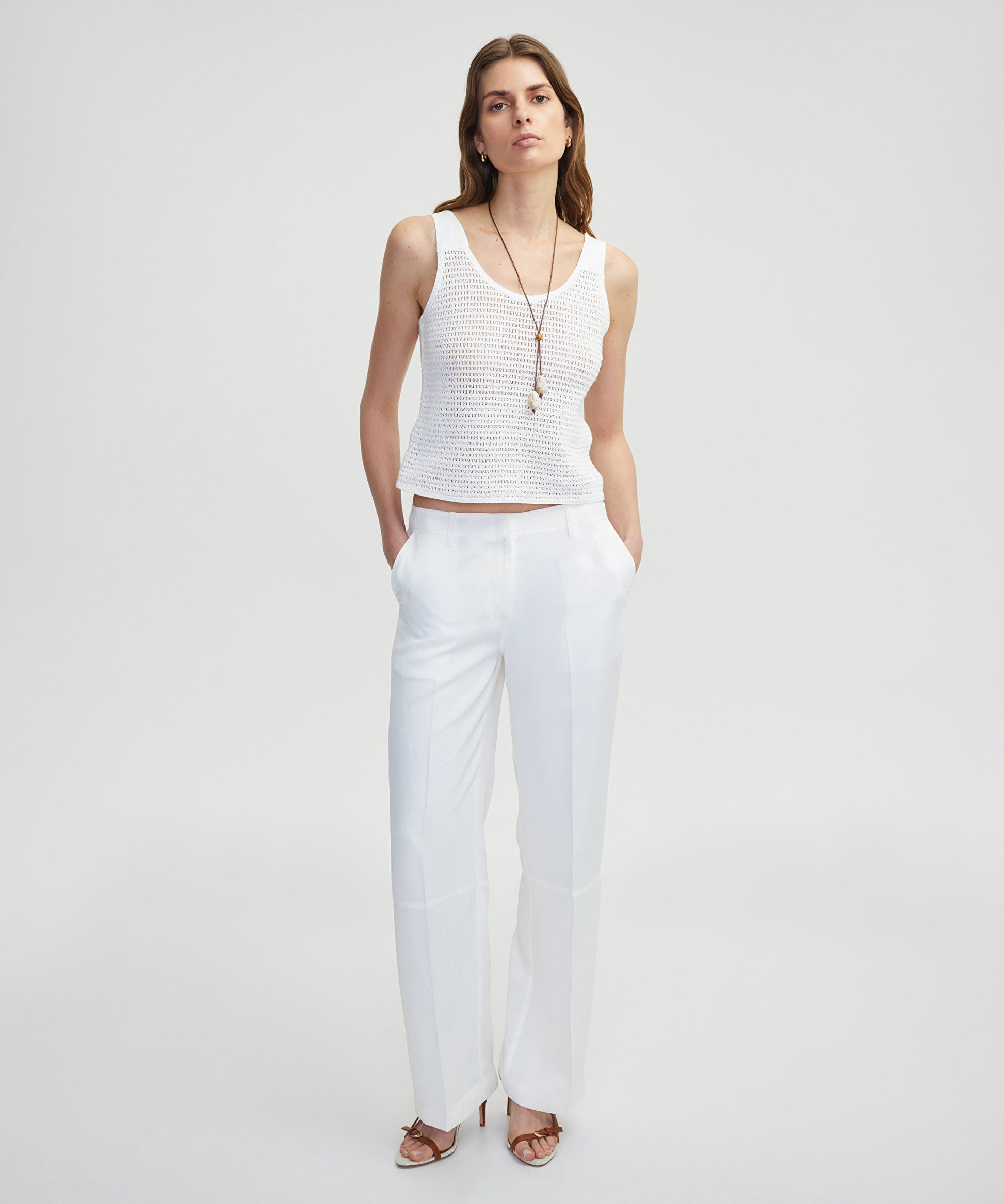 Beyaz Keten karışımlı straight fit pantolon IS1250003219002 ile tarzınızı tamamlayacaksınız. IPEKYOL tarzına sahip olmak için hemen tıklayın!