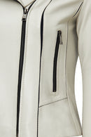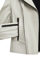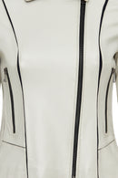 Kiara Kadın Bej Slim-fit Biker Deri Ceket