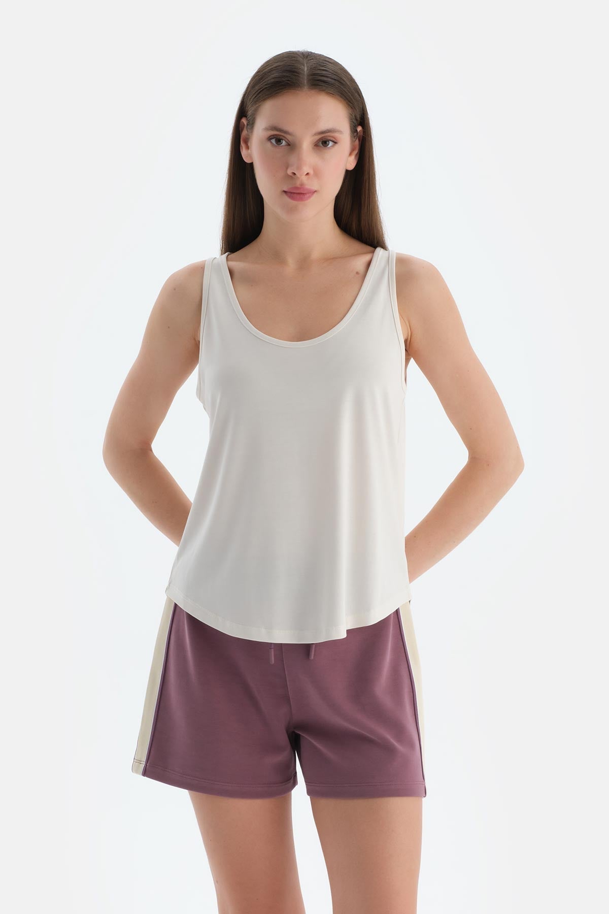 Kırık Beyaz Kadın Modal Karışımlı Atlet