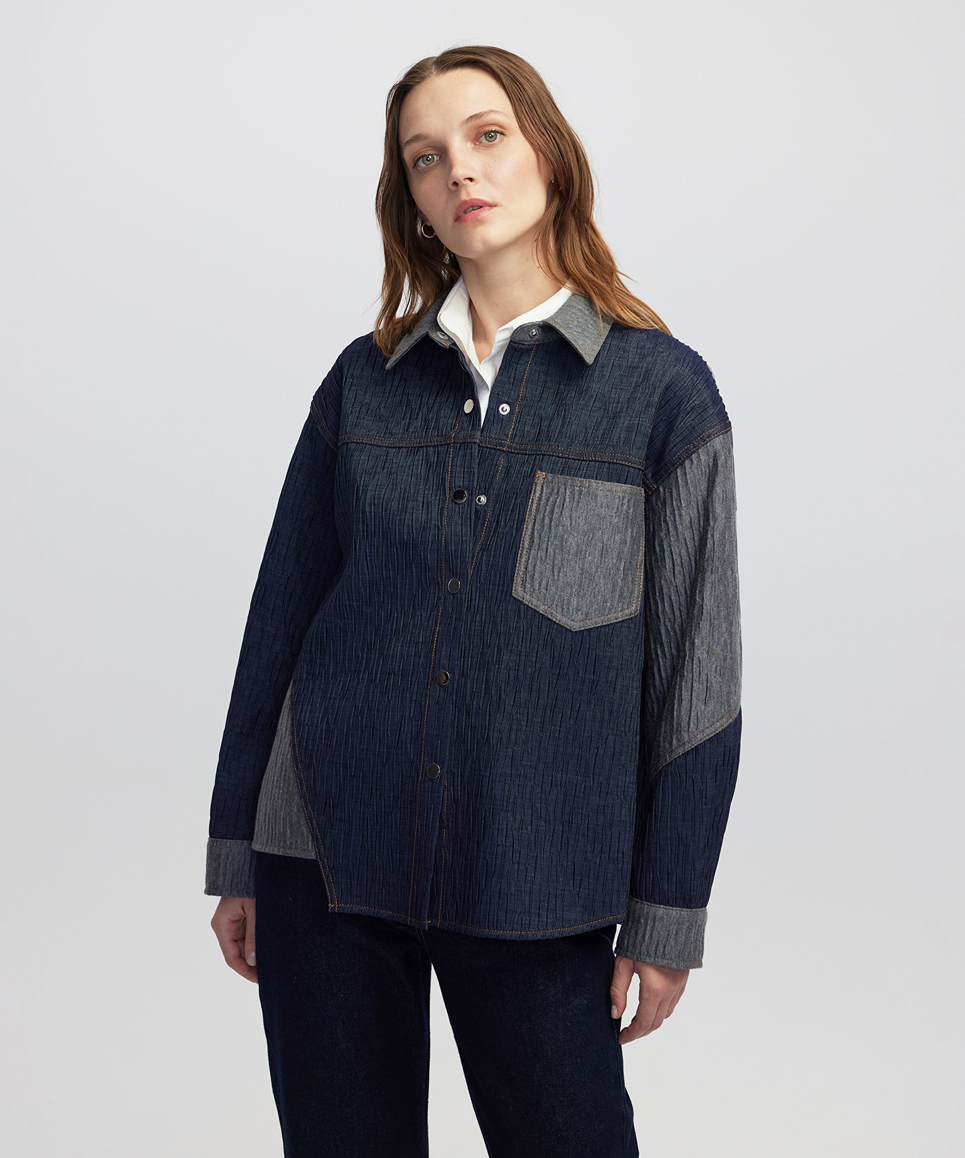 Kırışık Efektli Colorblock Ceket