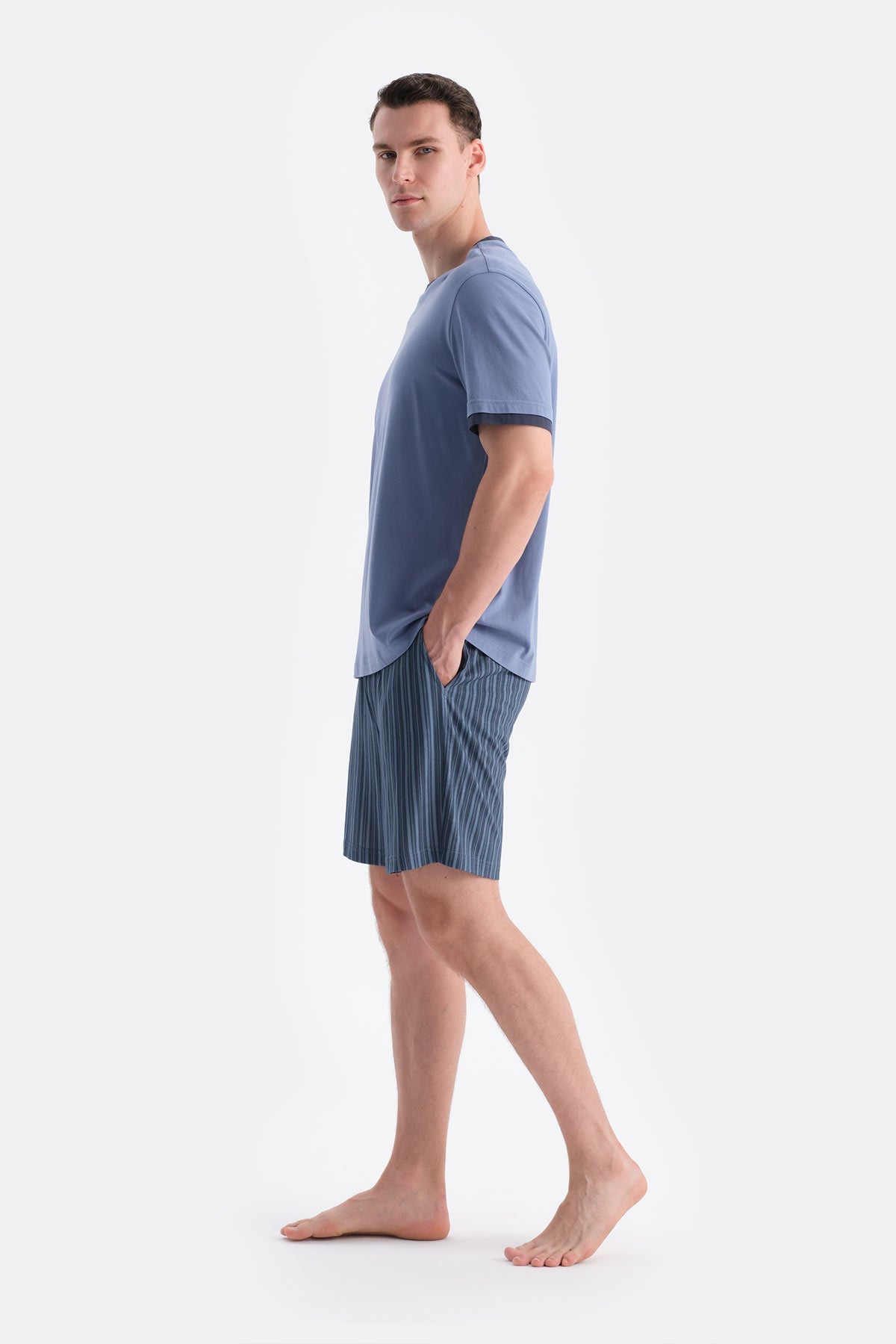 Kisa Kollu Alti Çizgili Tişört Şort Takim