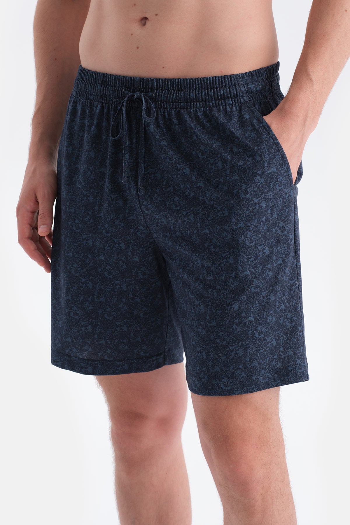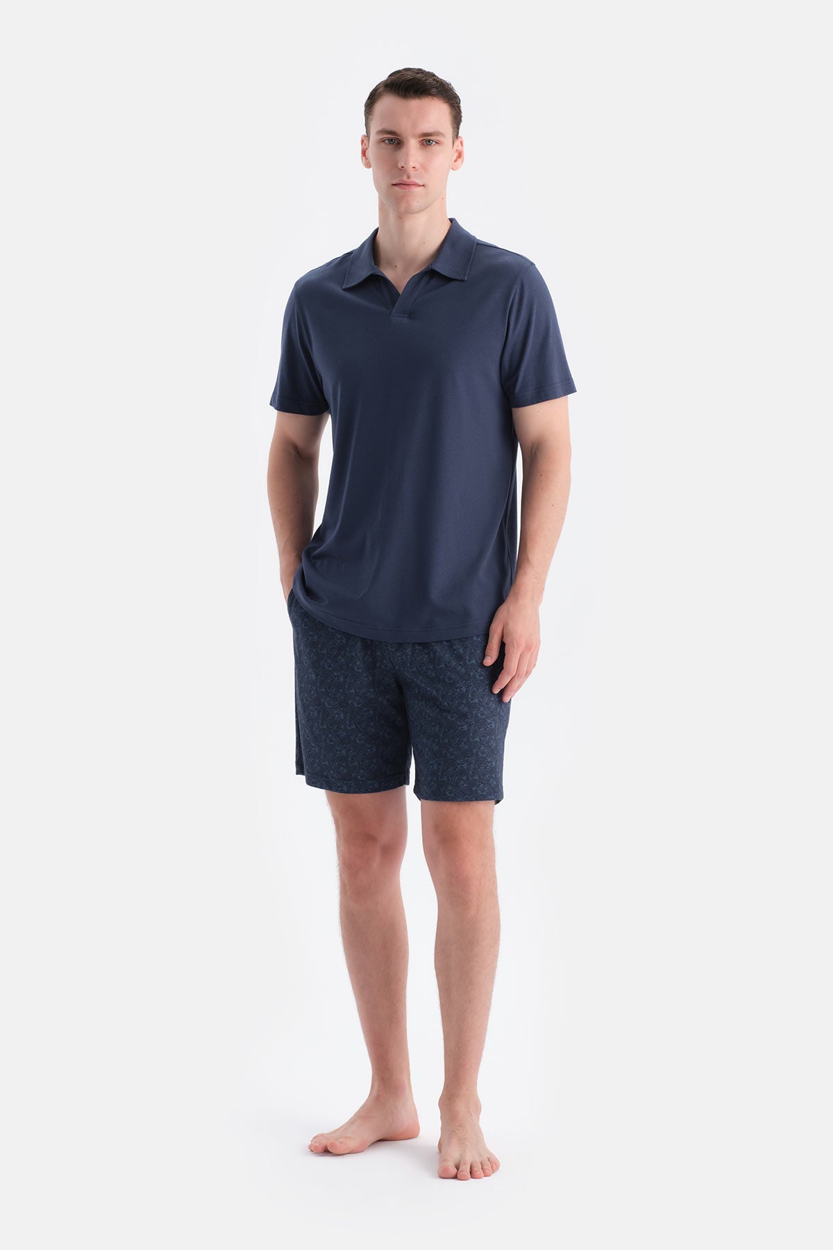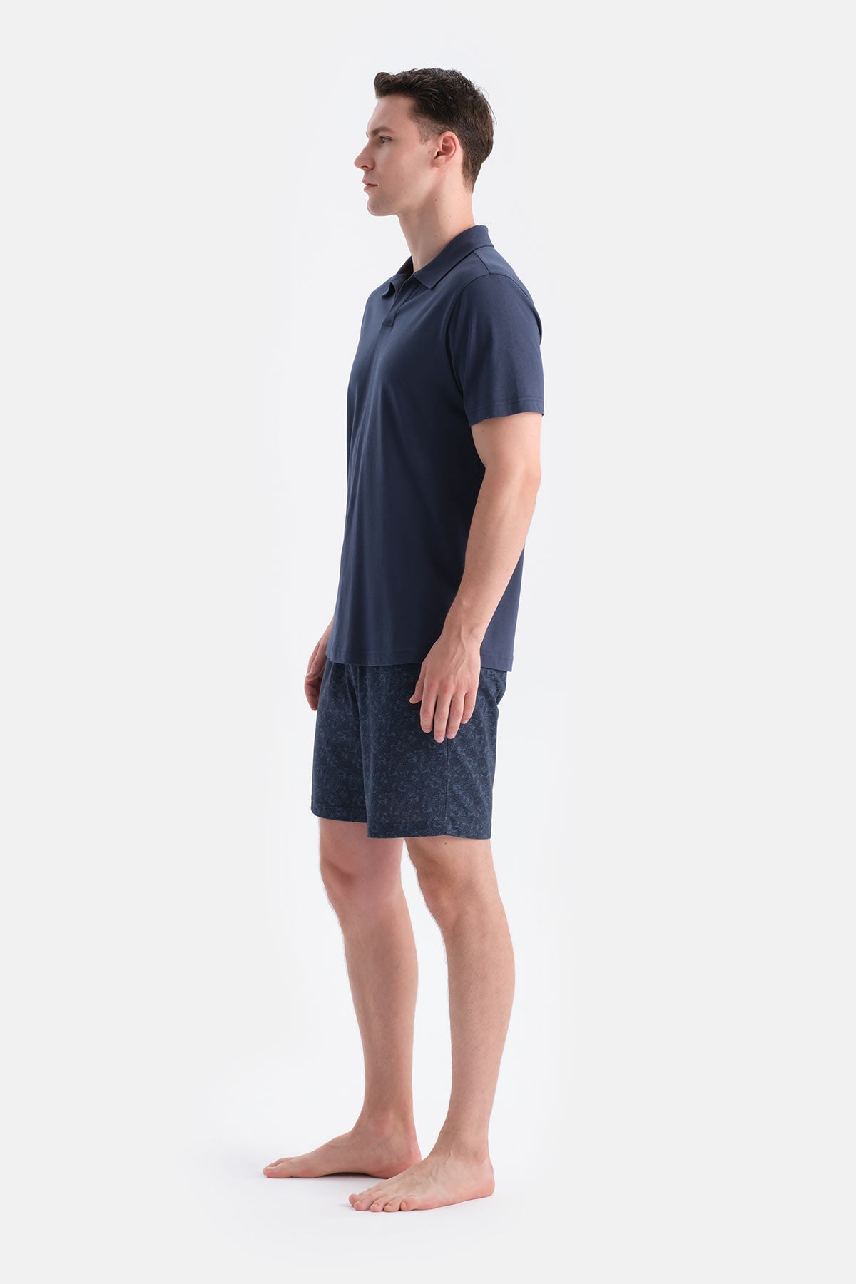 Kisa Kollu Polo Yaka Alti Desenli Tişört Şort Takim
