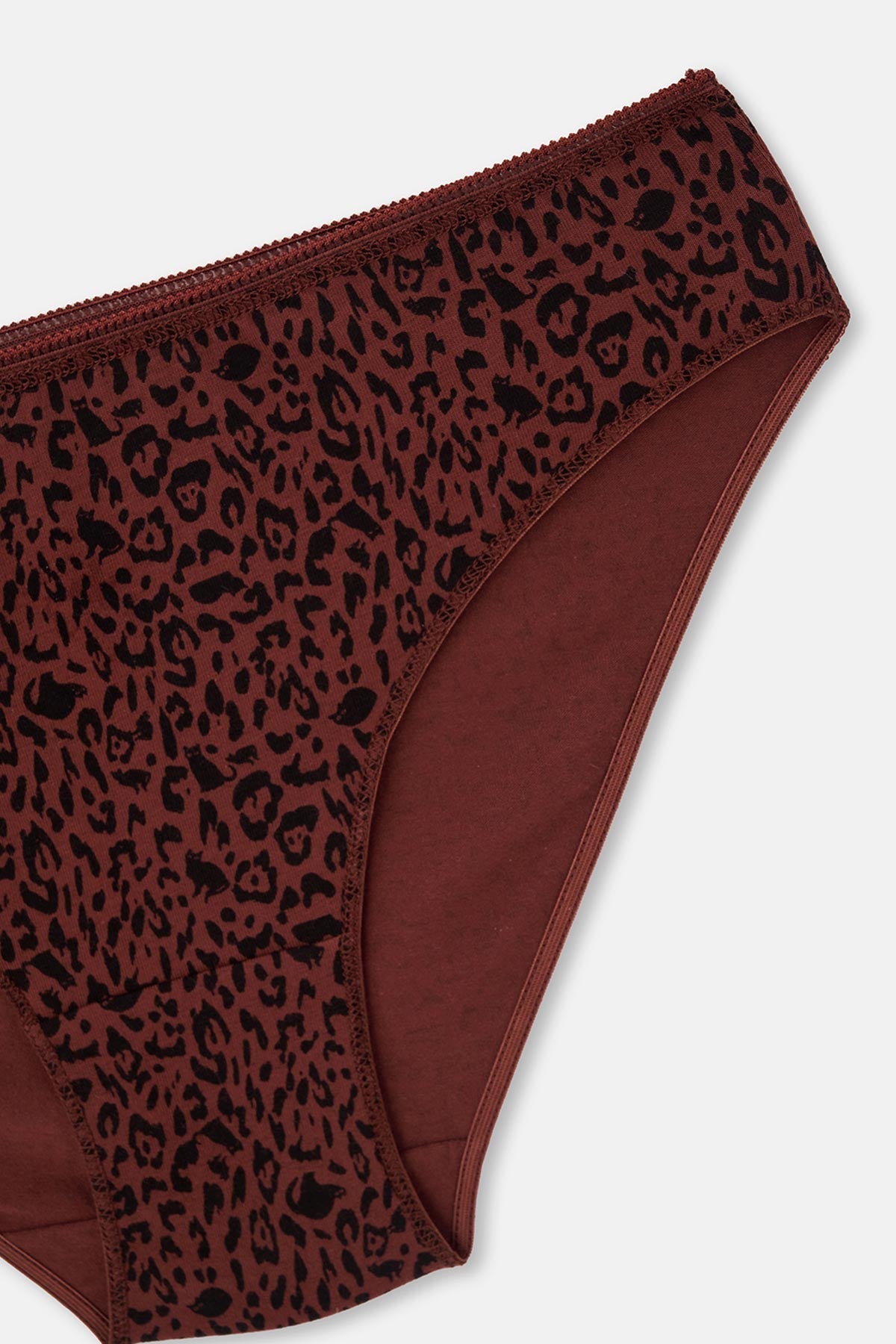 Kızıl Kahve-koyu Bej Kadın 3'lü Desenli Brıef Külot