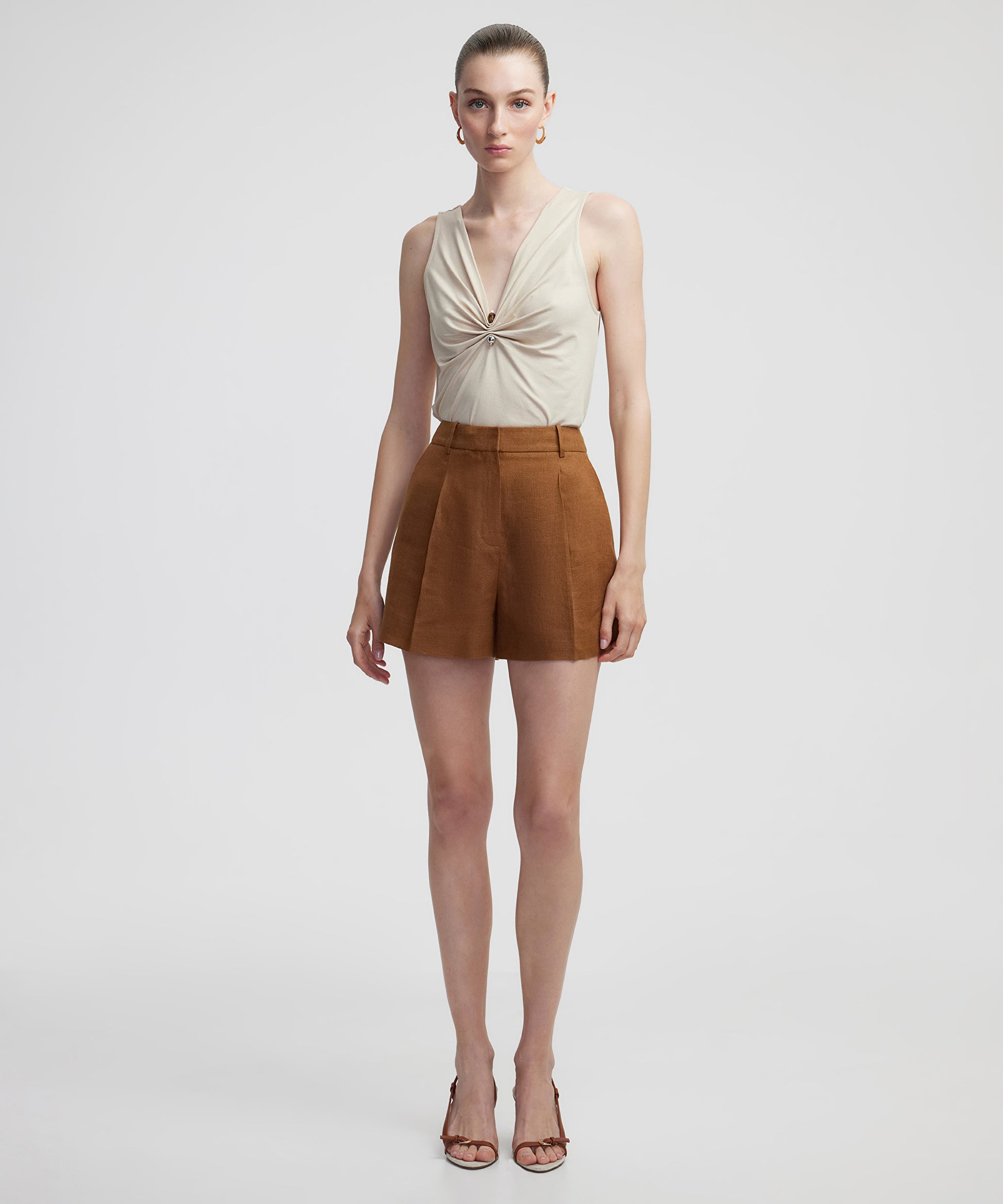 Natürel Kontrast aksesuarlı büzgülü tişört IS1250070150003 ile tarzınızı tamamlayacaksınız. IPEKYOL tarzına sahip olmak için hemen tıklayın!