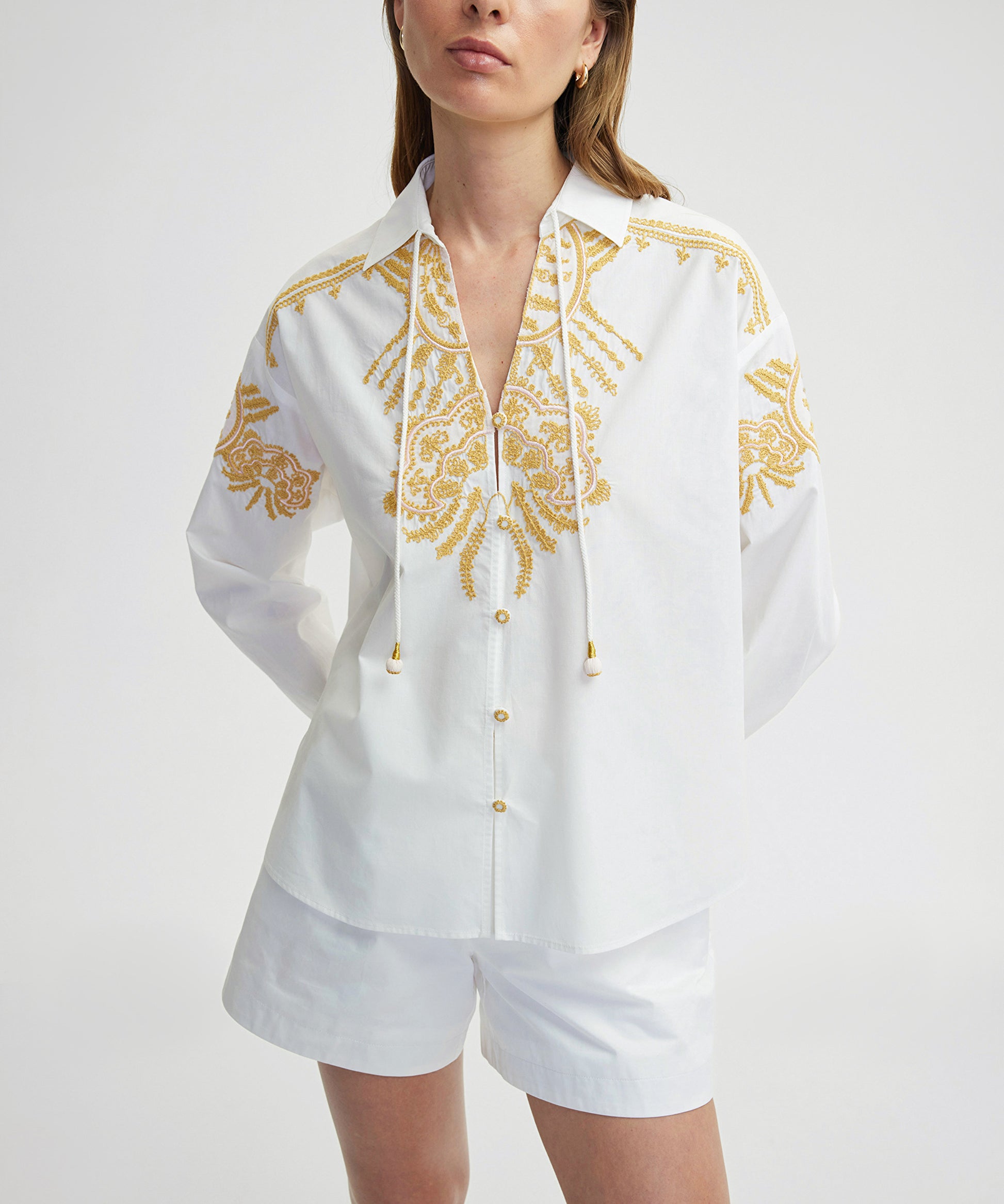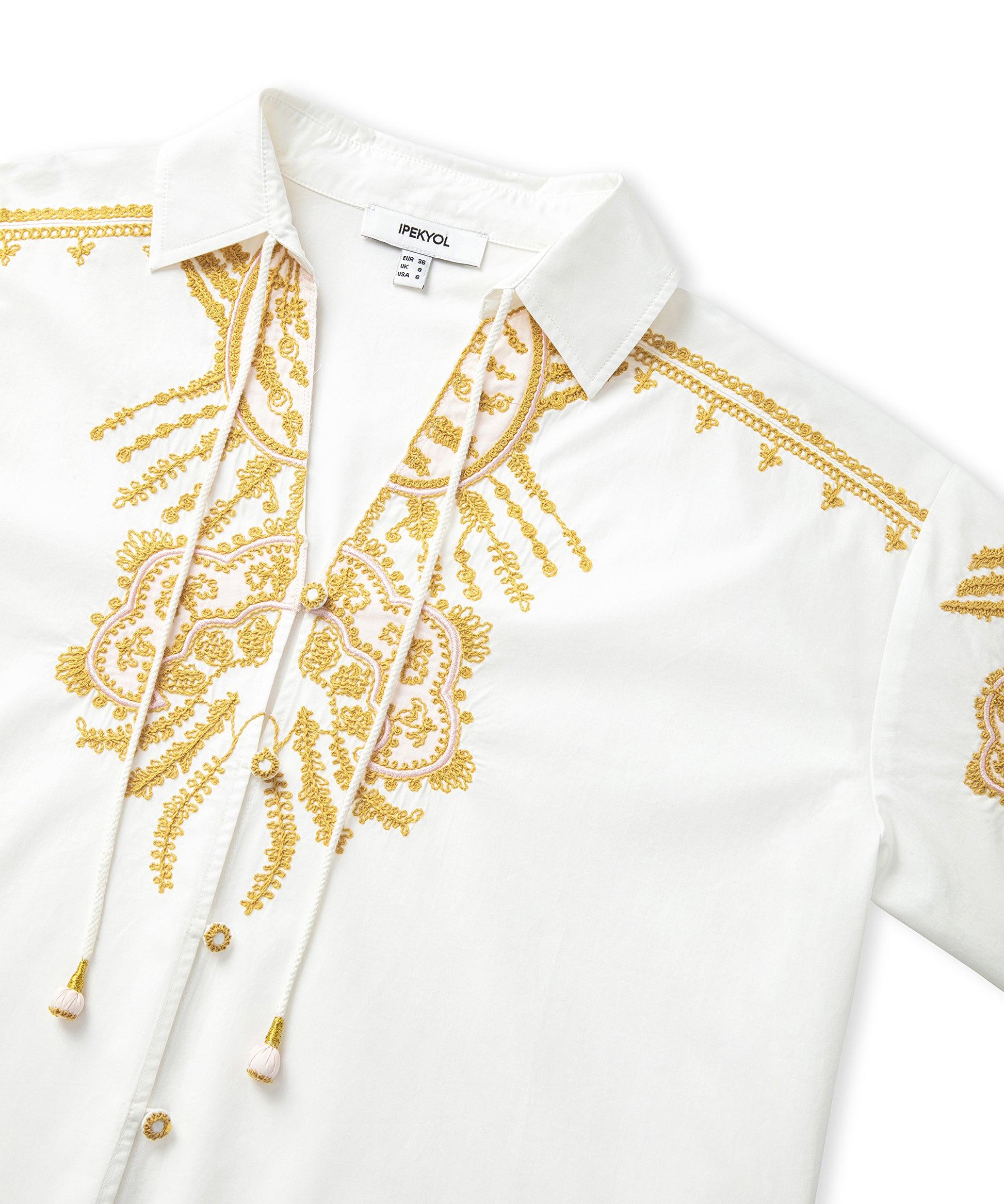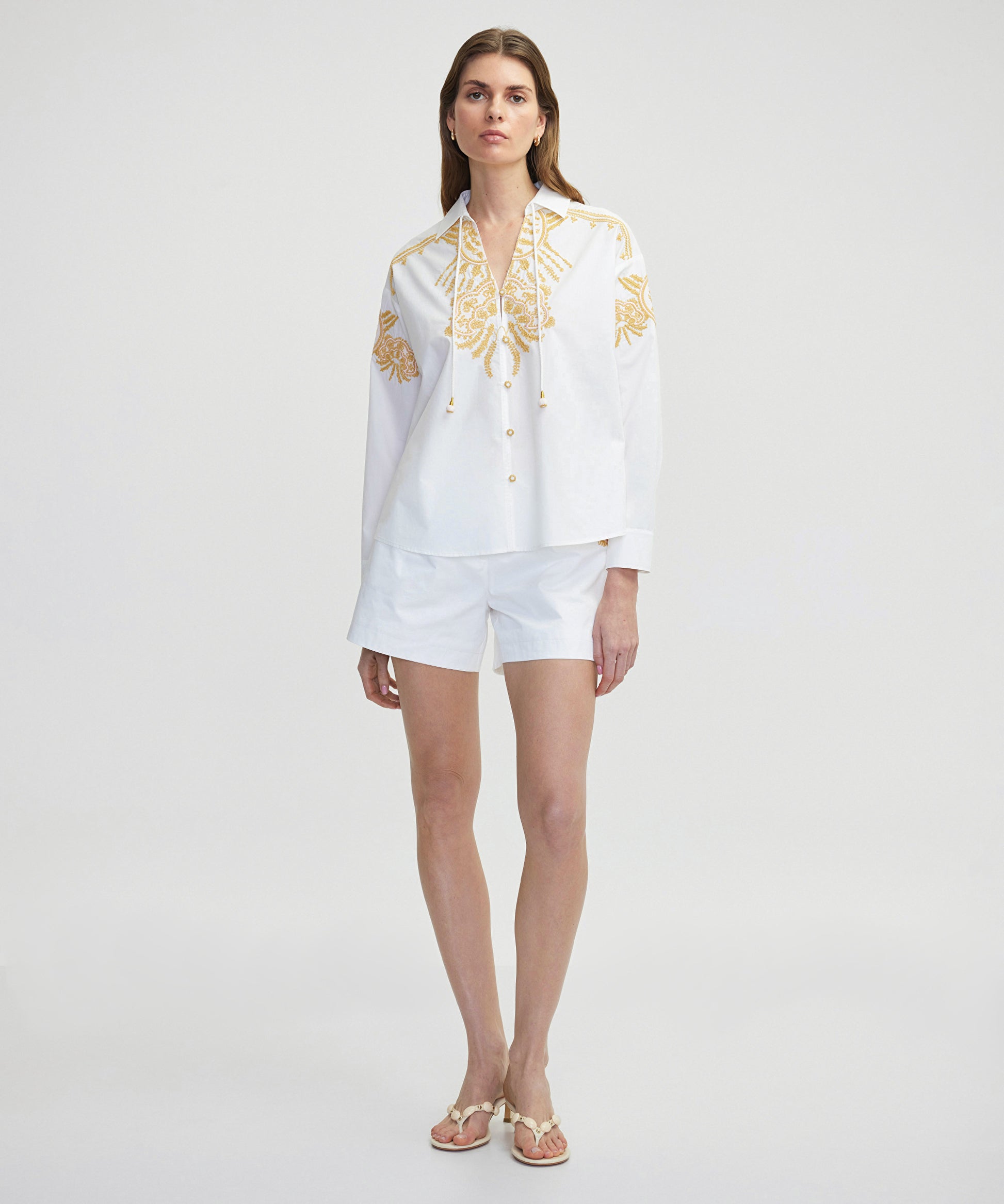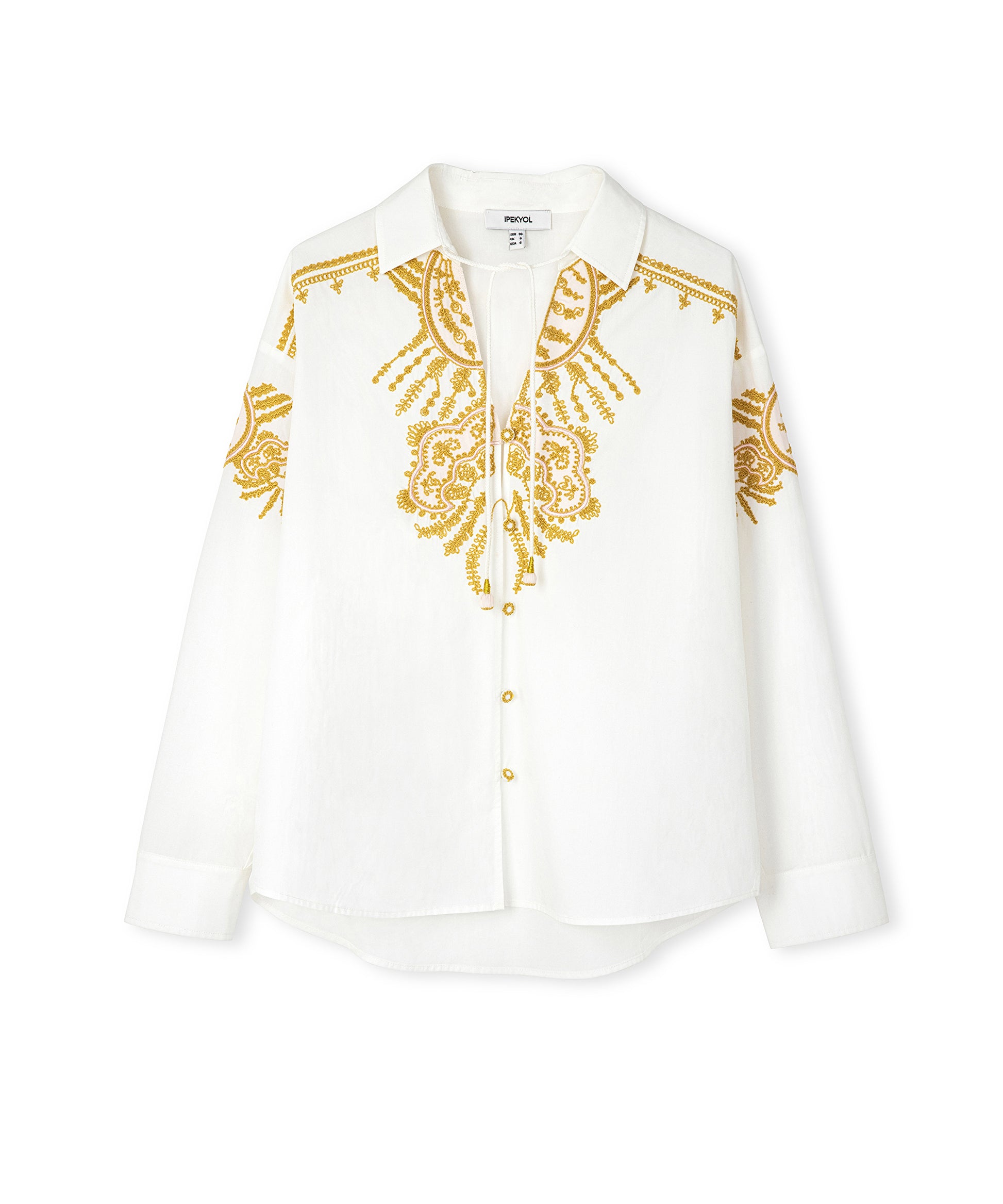 Beyaz Kontrast nakışlı yakası bağlamalı gömlek IS1250025153002 ile tarzınızı tamamlayacaksınız. IPEKYOL tarzına sahip olmak için hemen tıklayın!