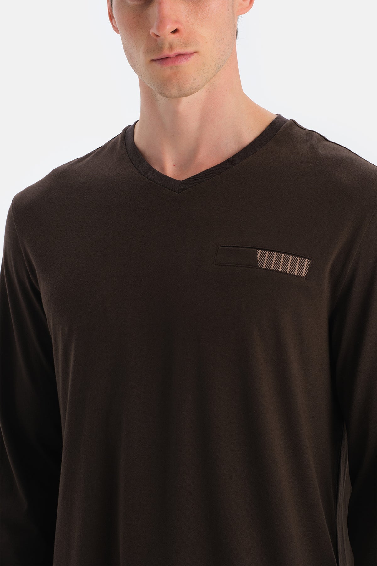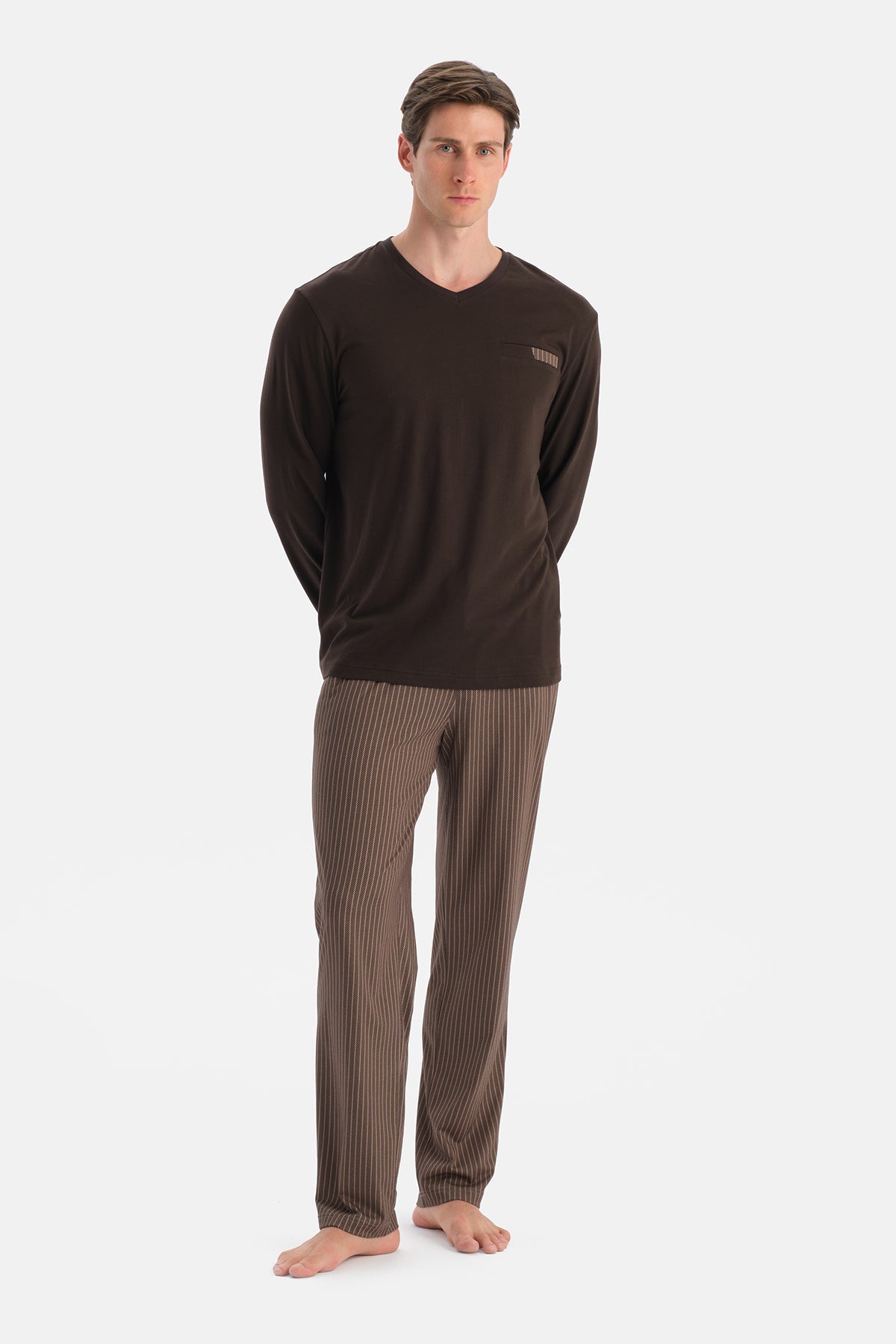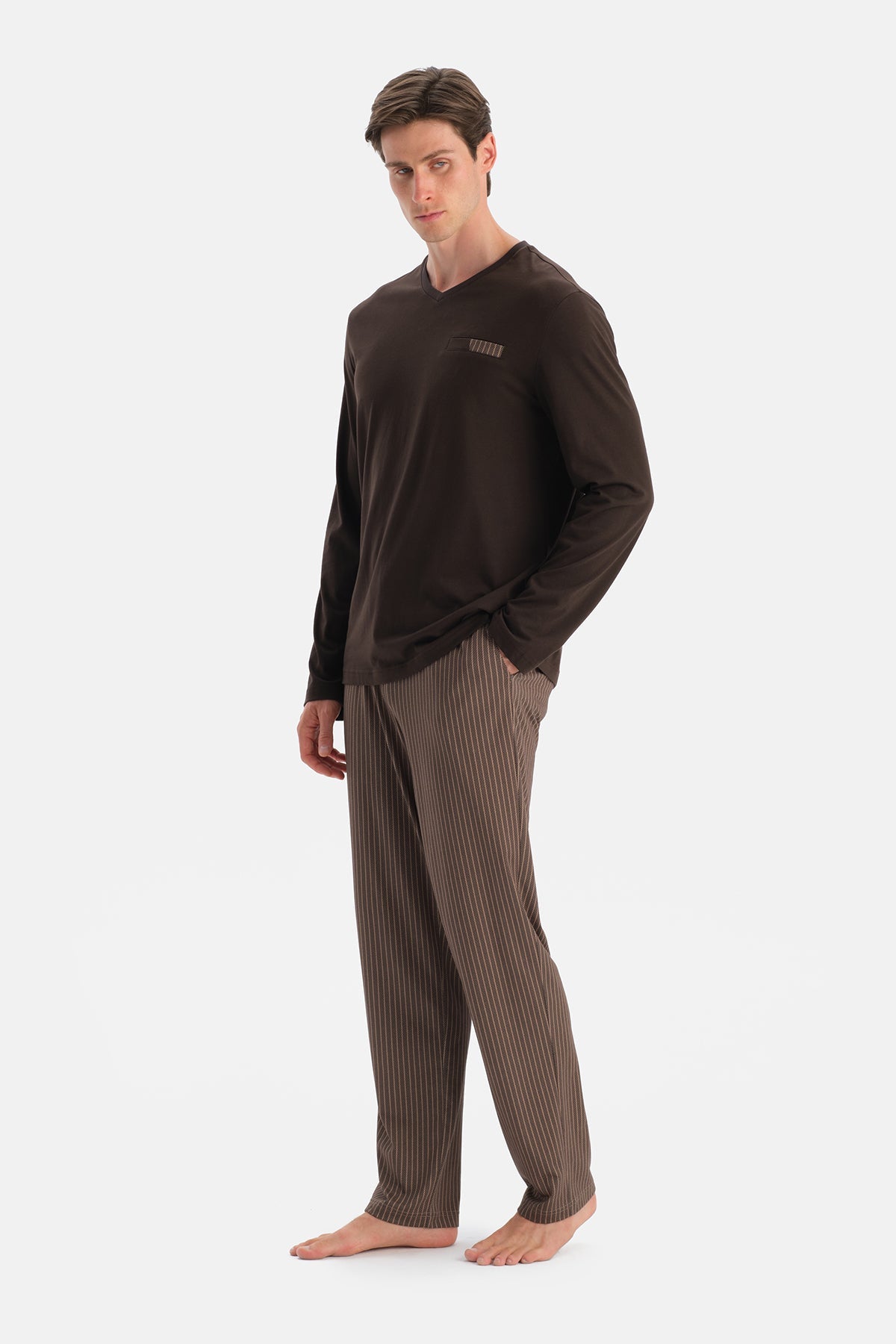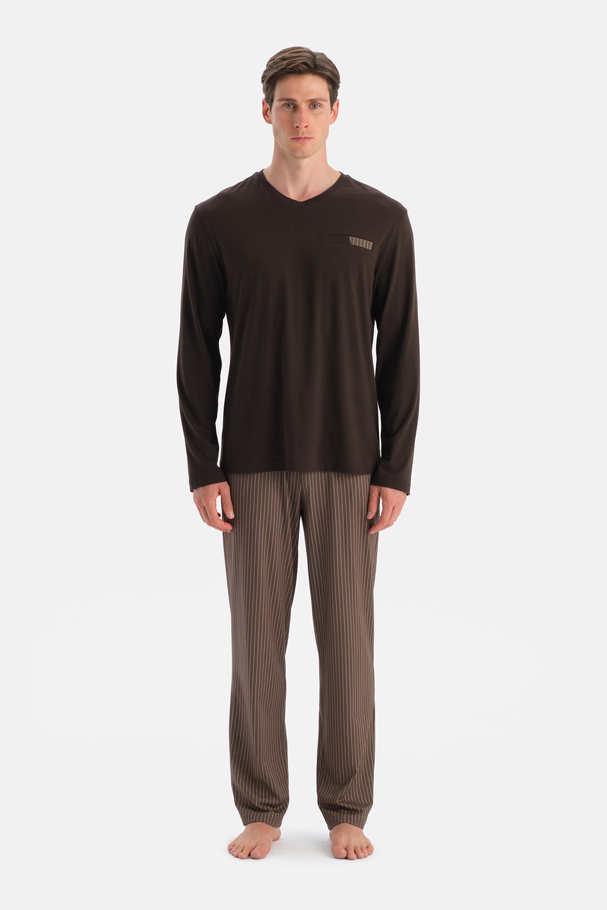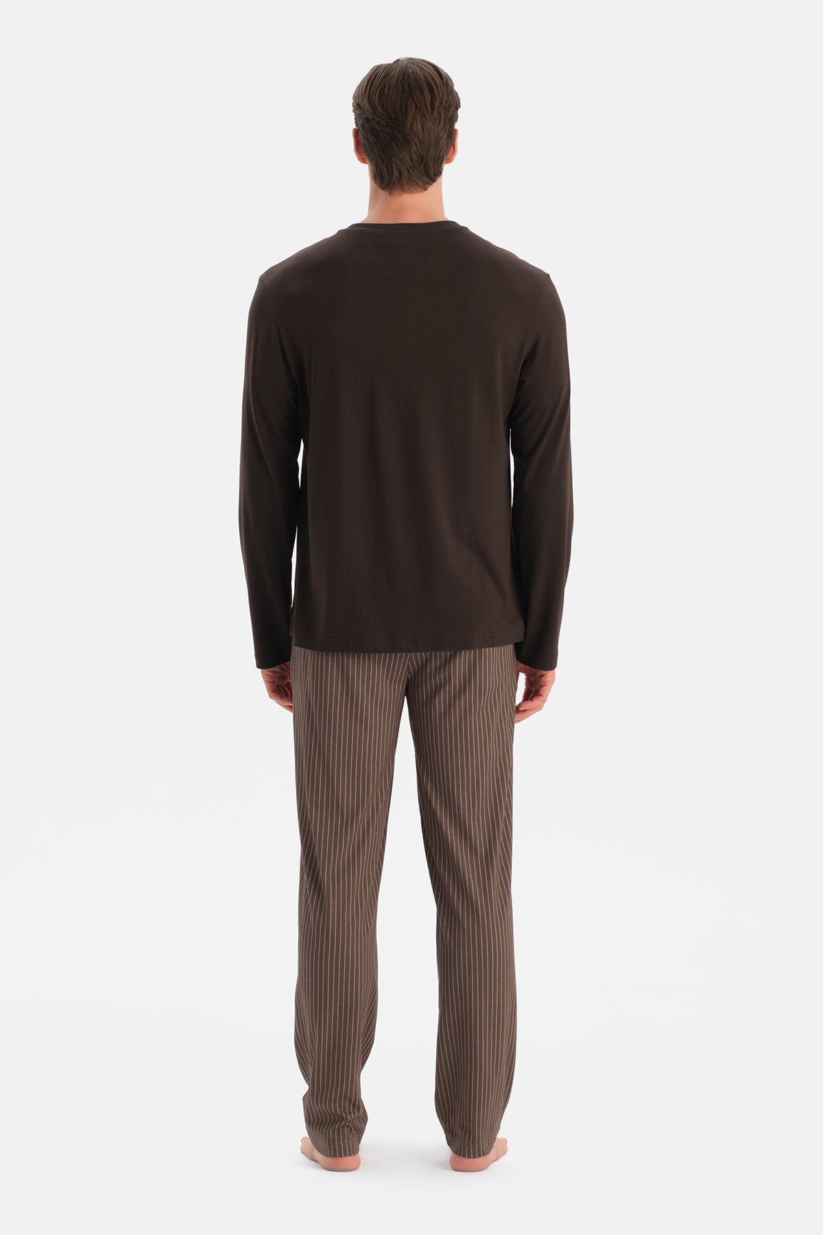 Koyu Kahve Travel Pamuk Modal Tişört Pantolon Pijama Seti