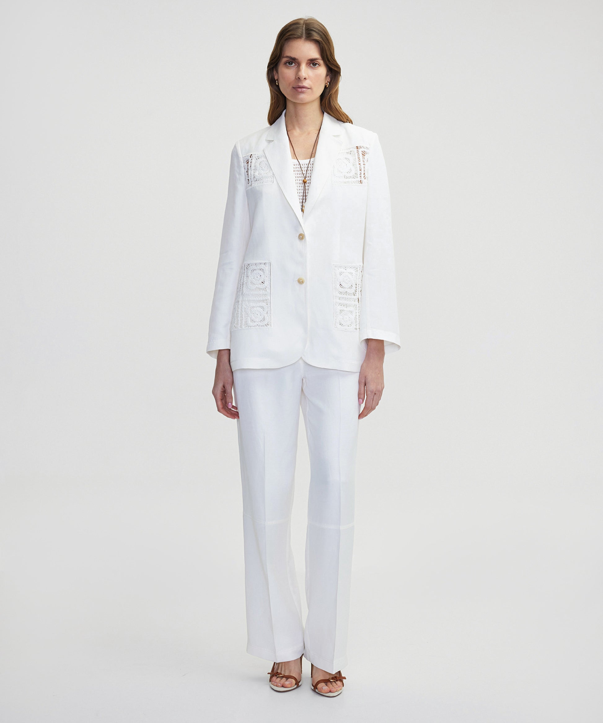 Beyaz Kroşe aplikeli blazer IS1250005112002 ile tarzınızı tamamlayacaksınız. IPEKYOL tarzına sahip olmak için hemen tıklayın!