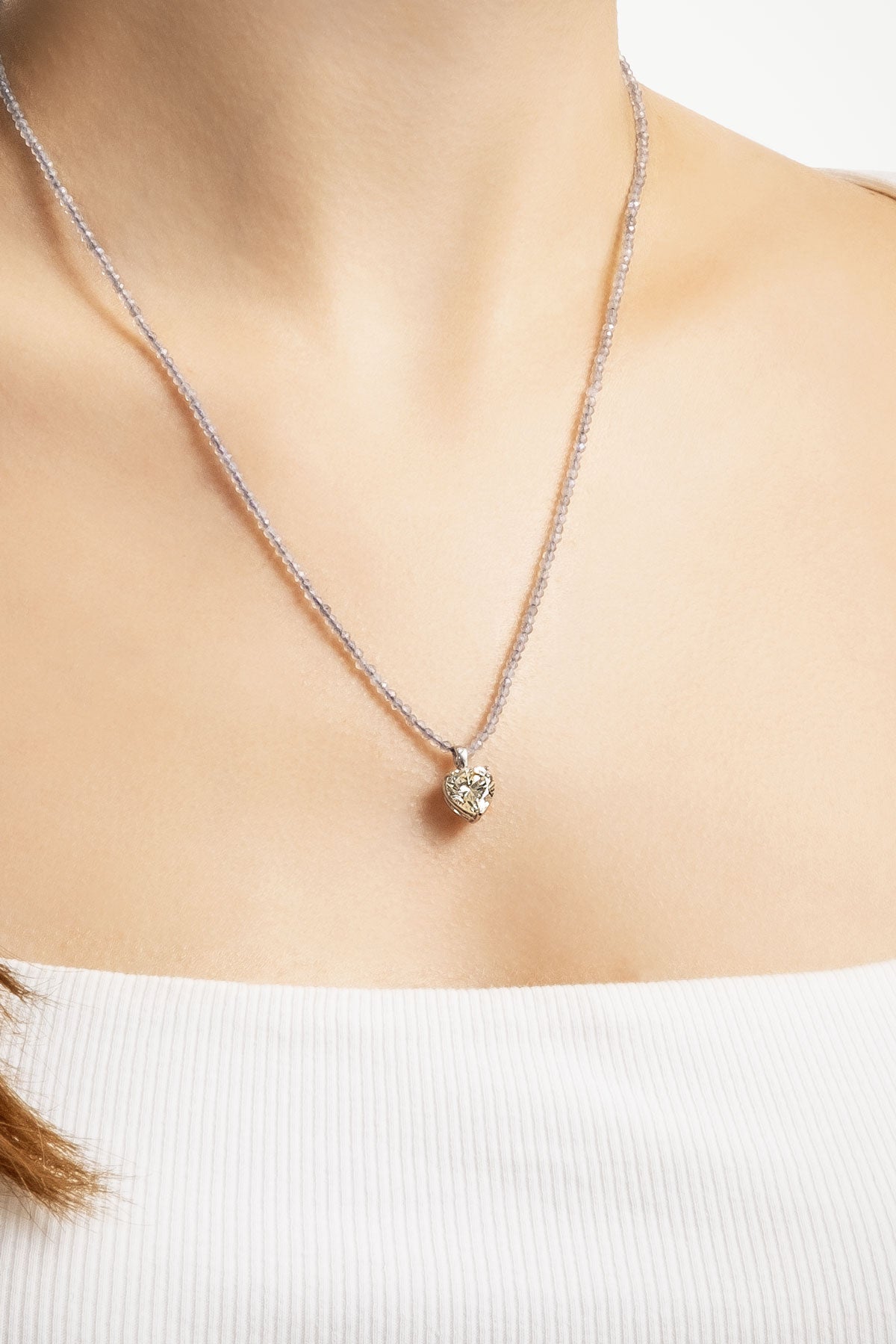 Labradoit Kalp 18 Ayar Beyaz Altın Kaplama 45 Cm Gümüş Kolye 07309019099