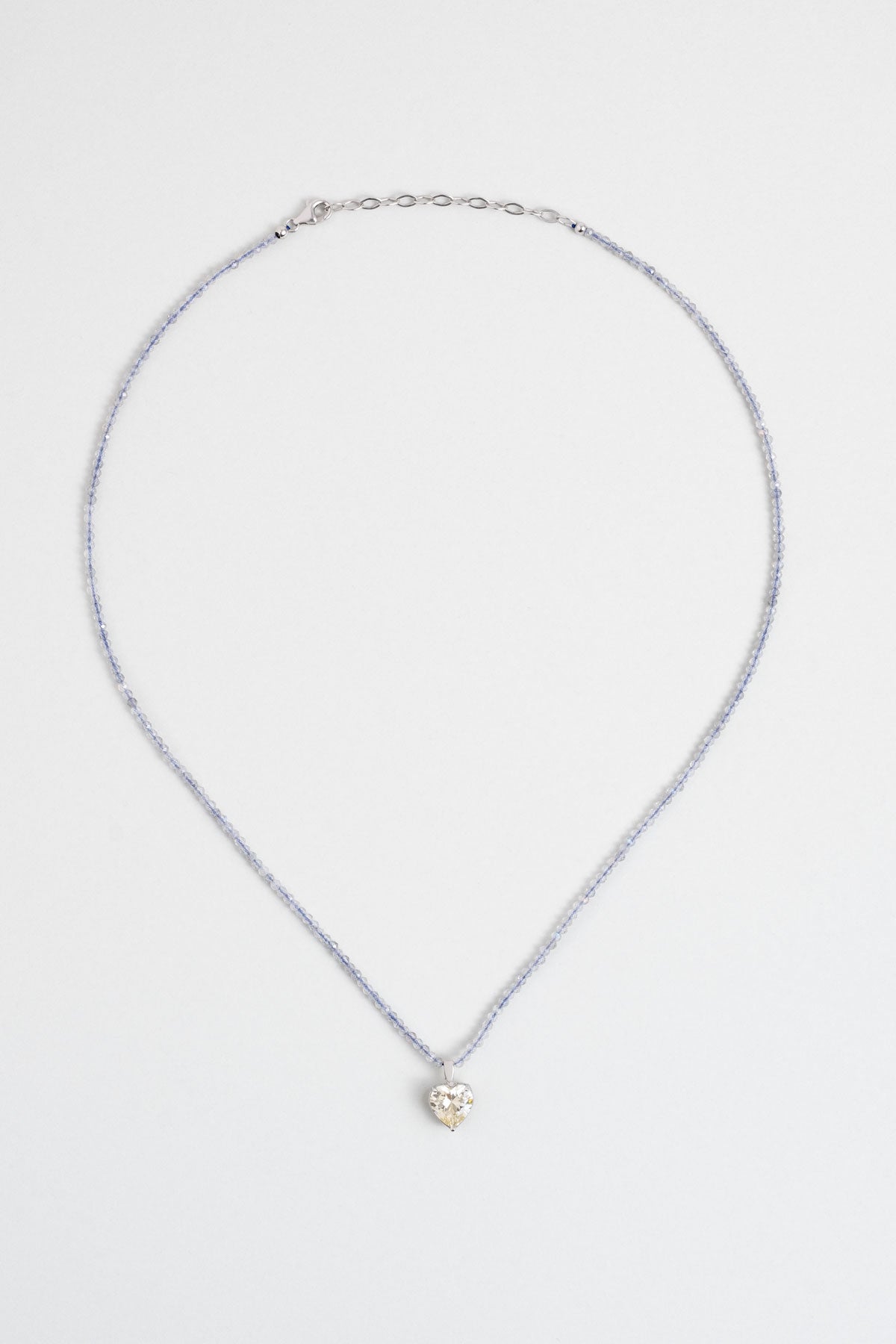 Labradoit Kalp 18 Ayar Beyaz Altın Kaplama 45 Cm Gümüş Kolye 07309019099