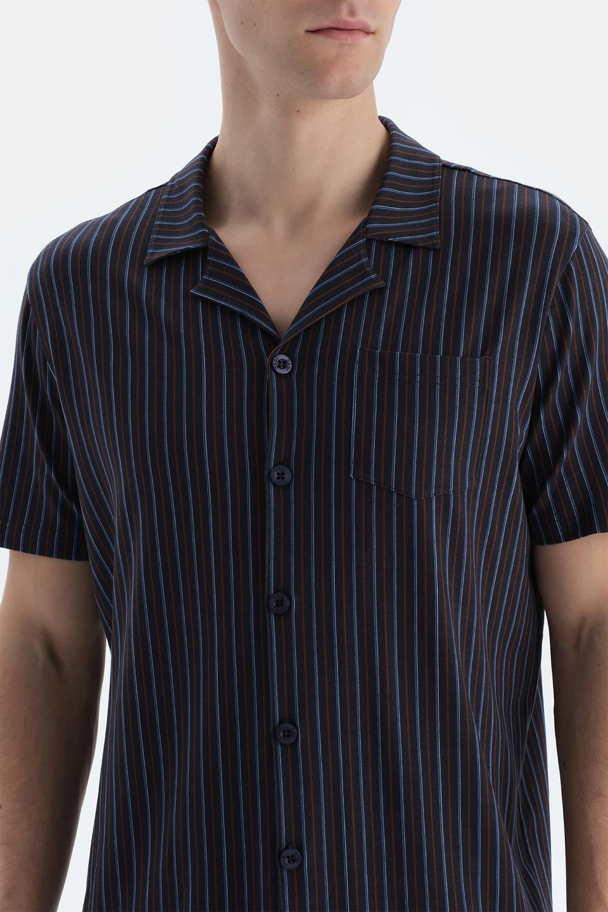 Lacivert Çizgili Gömlek Şort Pijama Takımı