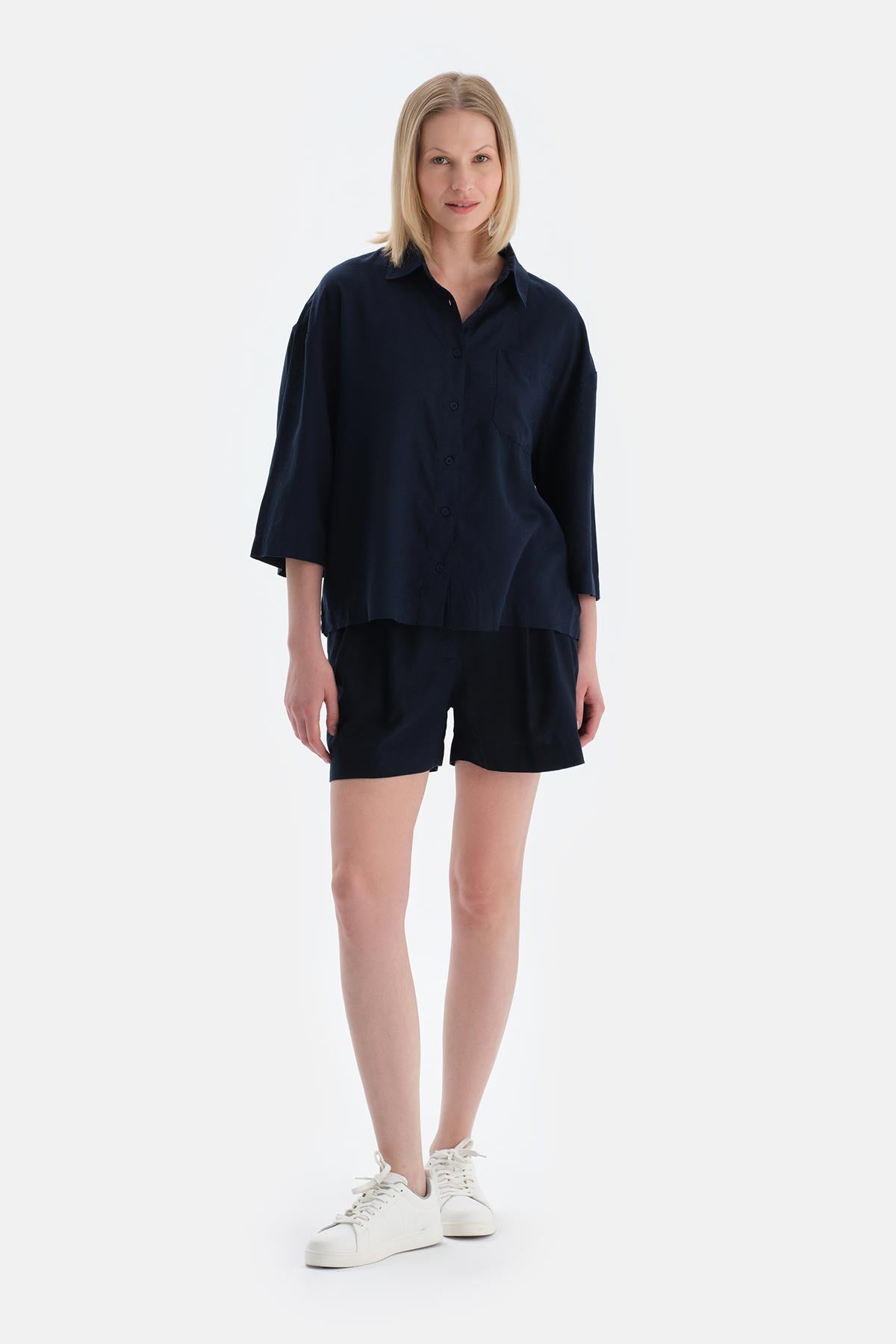 Lacivert Keten Dokuma Şort 25SW15385BB_337 şimdi Dagi'de. Kaliteli, konforlu ve özel fiyatlarla sizleri bekliyor.