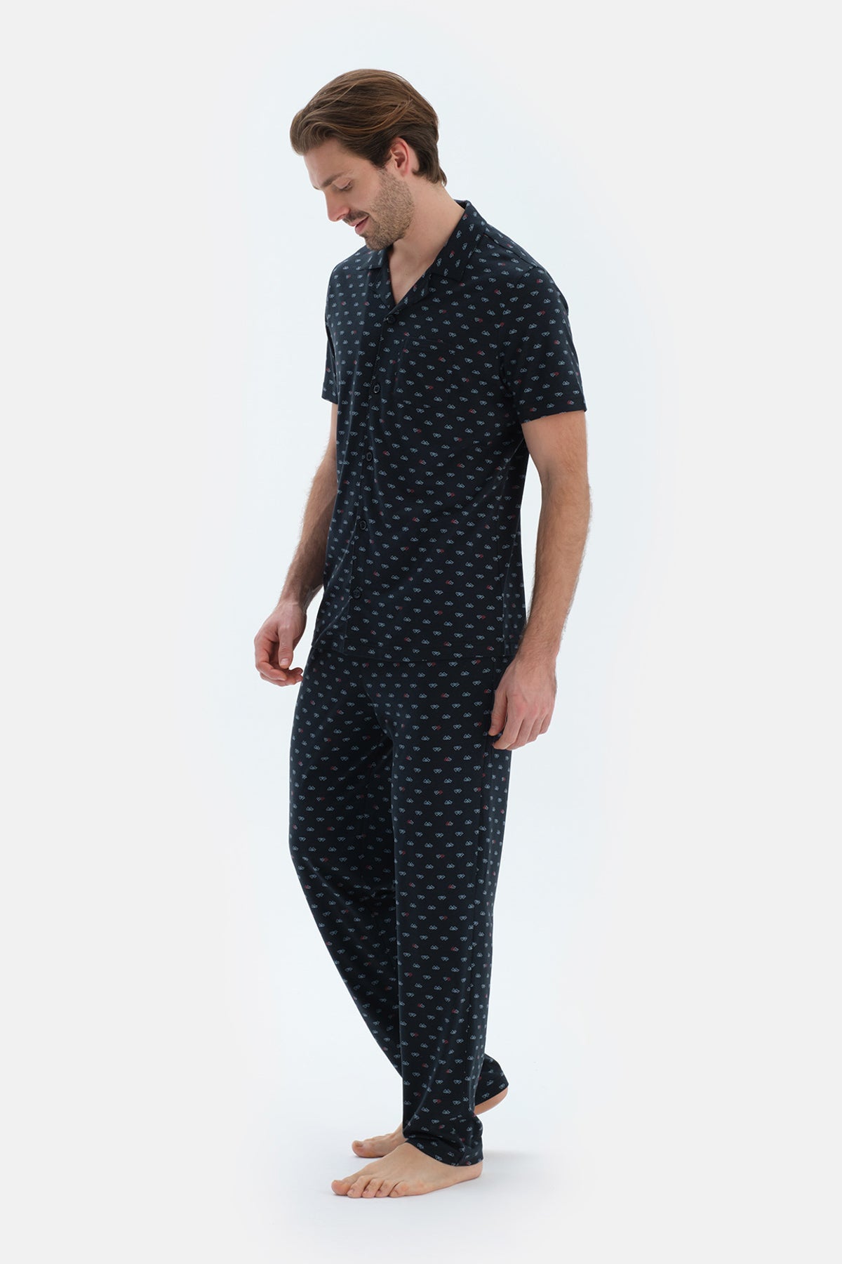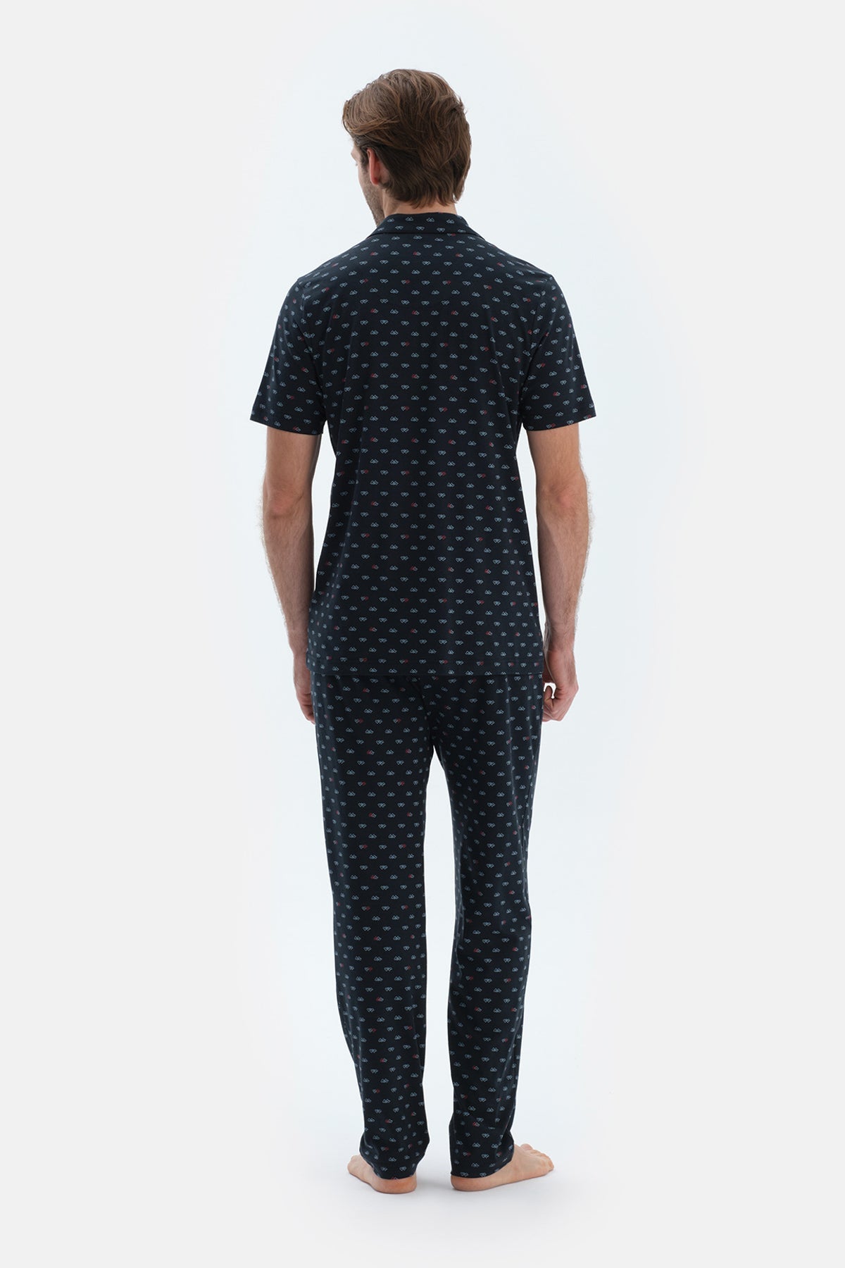 Lacivert Mıkroprınt Baskılı Penye Modal Gömlek Pantolon Pijama Takımı