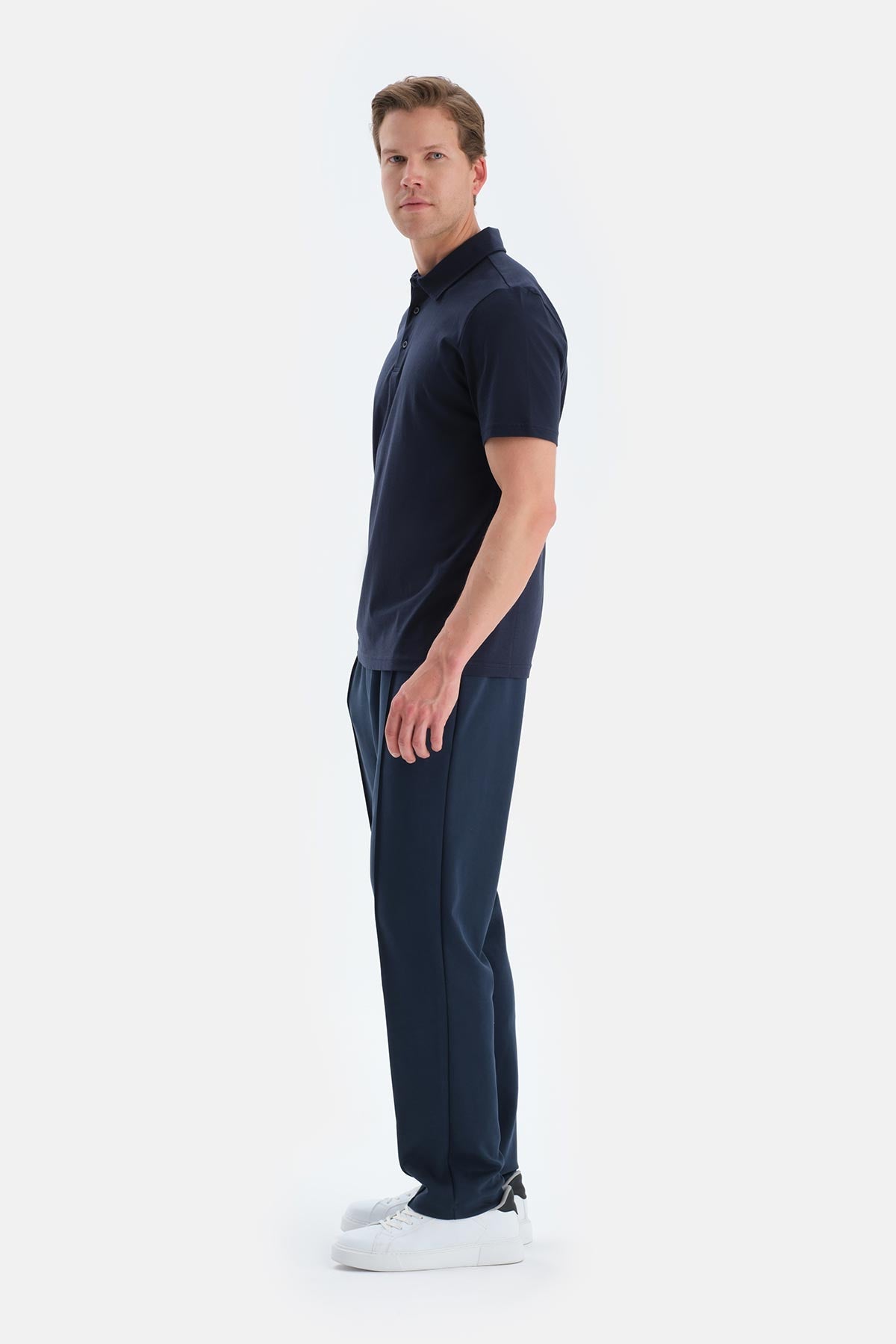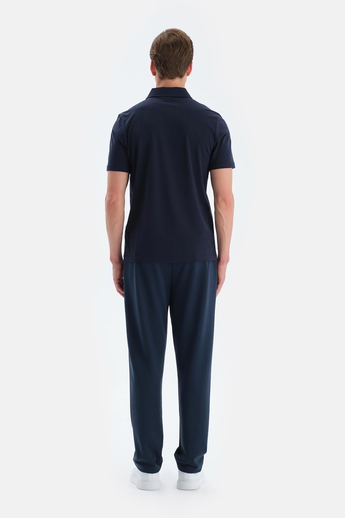 Lacivert Polo Yaka Ipek Apre Kısa Kollu Tişört