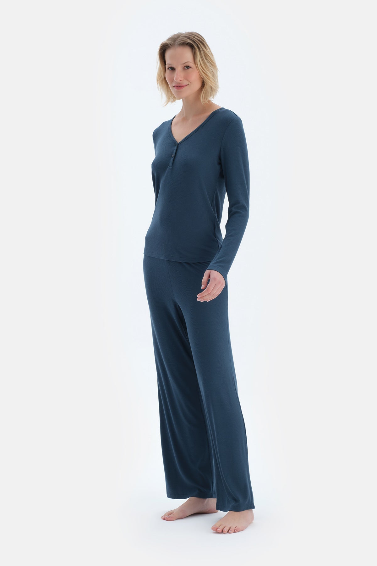 Lacivert V Yaka Viskon Kaşkorse Tişört Pantolon Pijama Takımı 25SW17762BB_337 şimdi Dagi'de. Kaliteli, konforlu ve özel fiyatlarla sizleri bekliyor.
