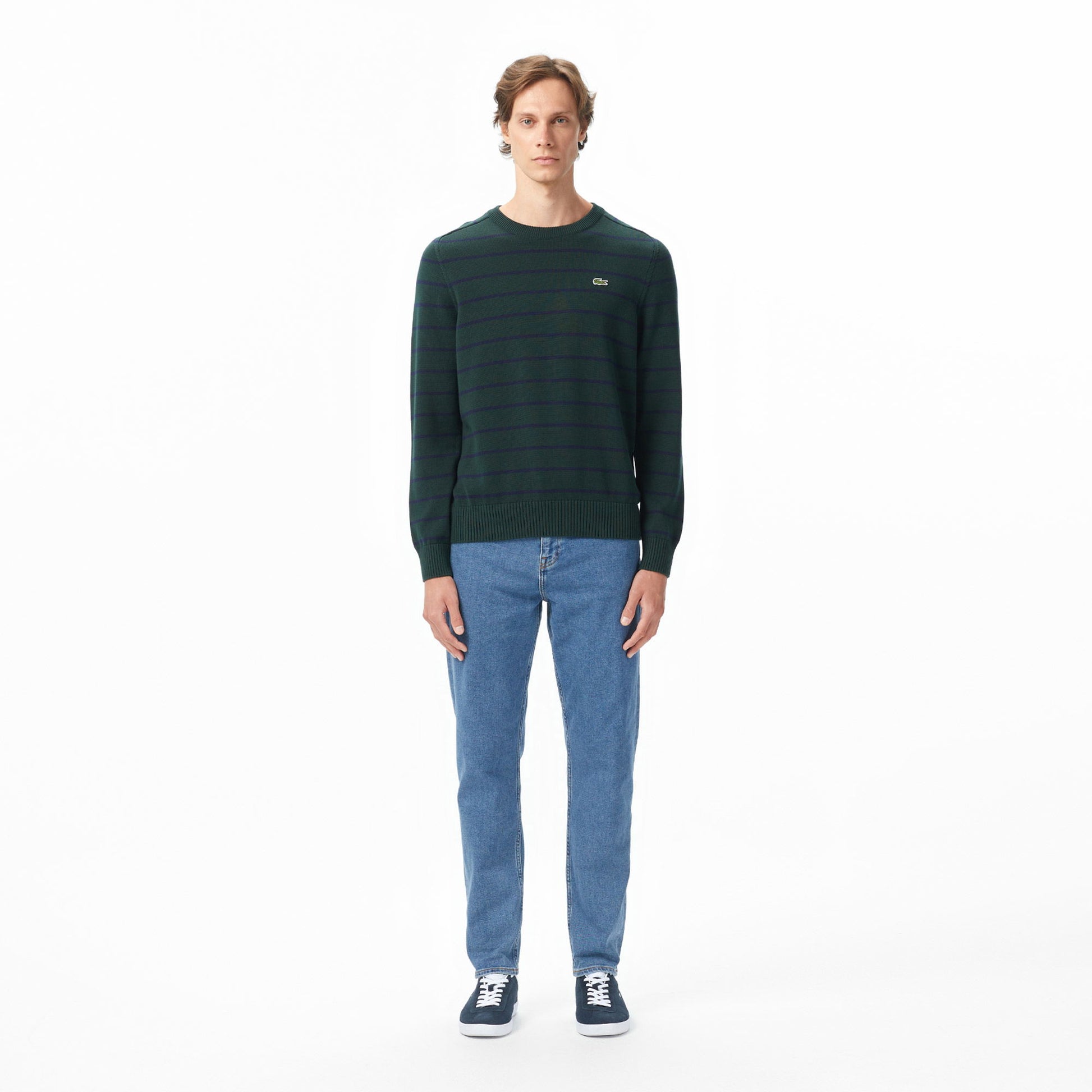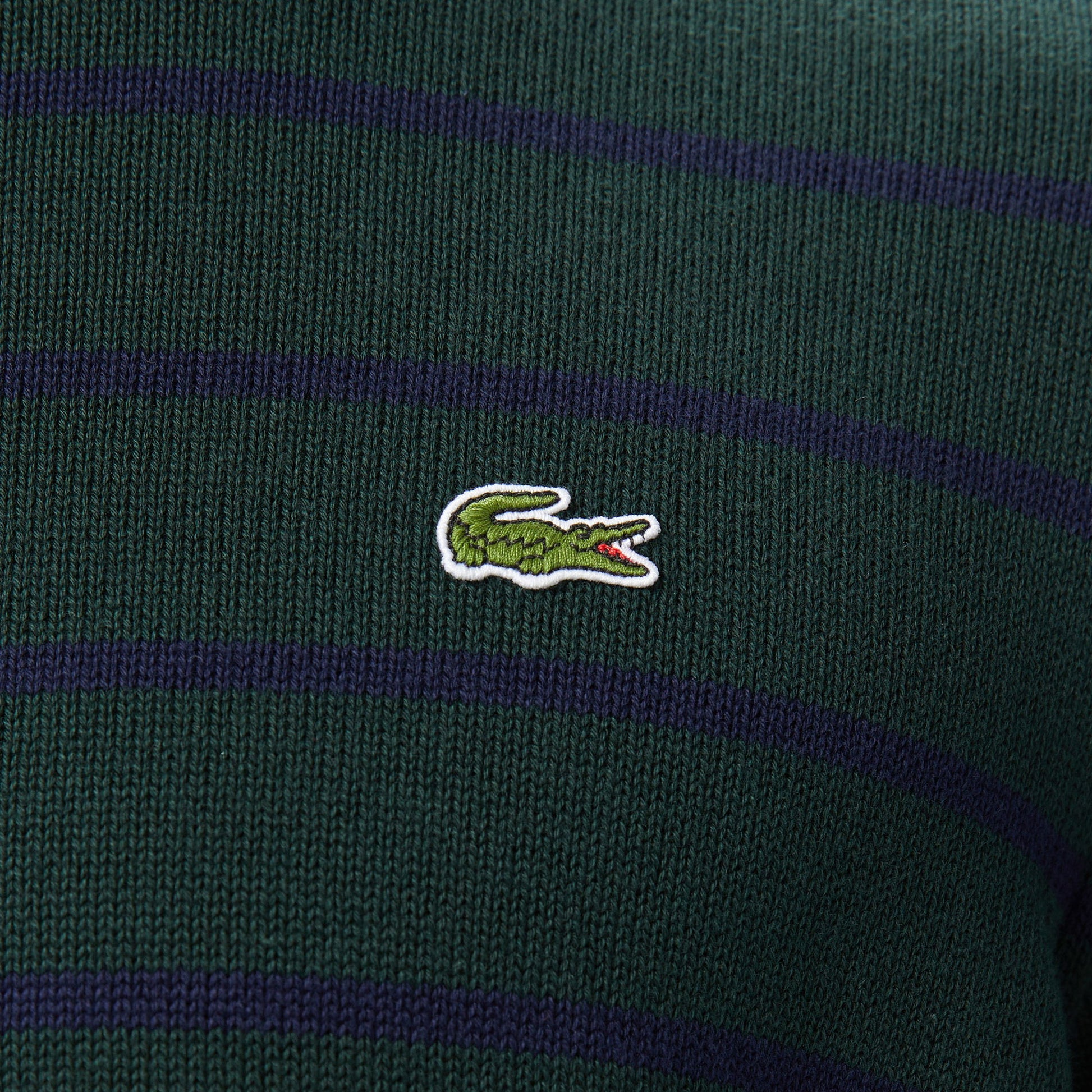 Lacoste Erkek Classic Fit Bisiklet Yaka Çizgili Yeşil Kazak