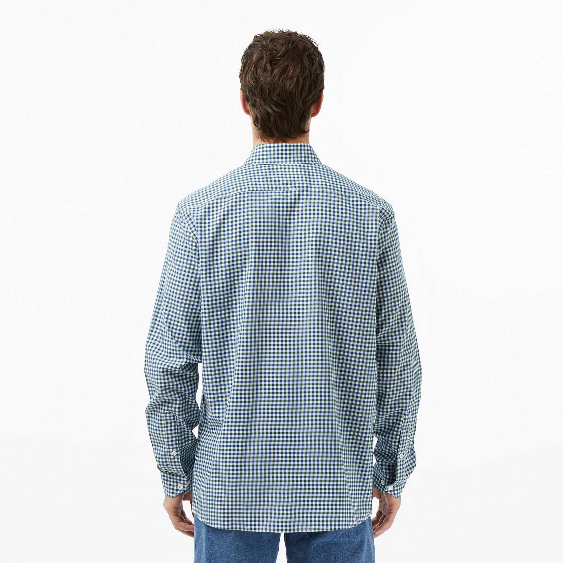 Lacoste Erkek Regular Fit Düğmeli Yaka Kareli Lacivert Gömlek
