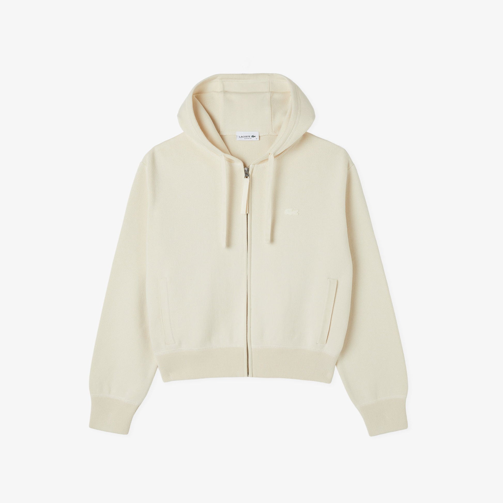 Lacoste Kadın Classic Fit Kapüşonlu Krem Hırka