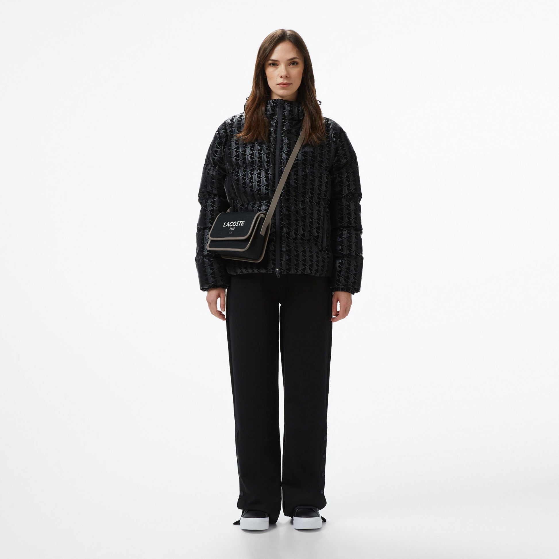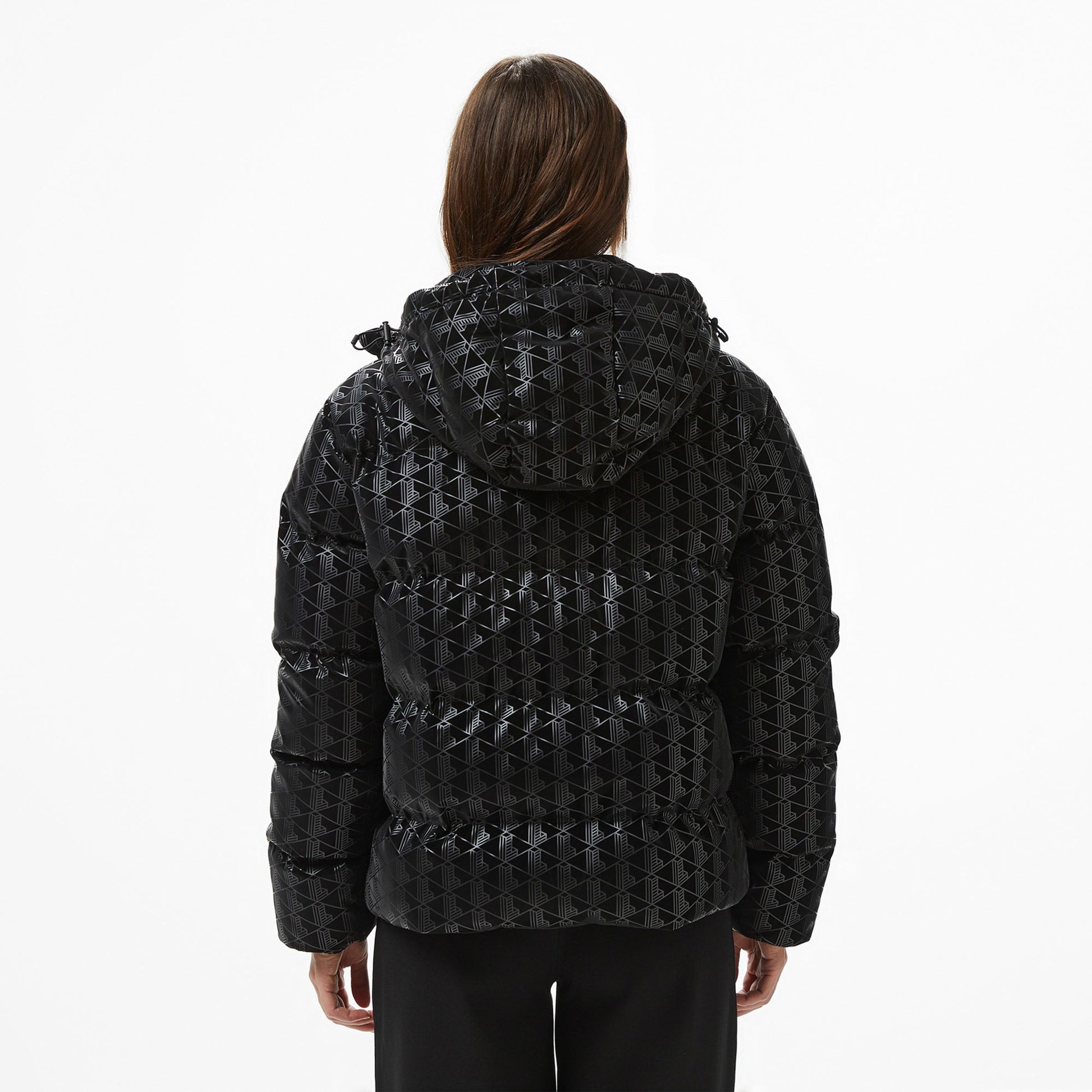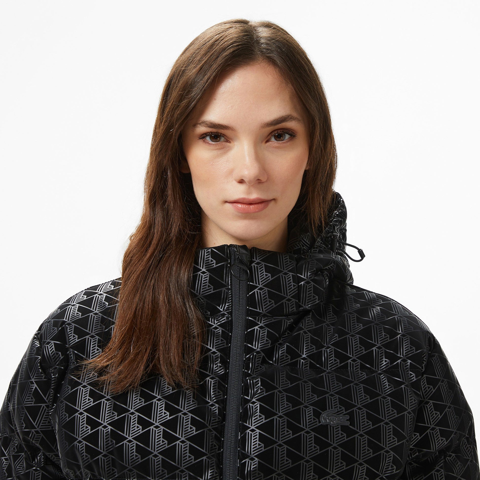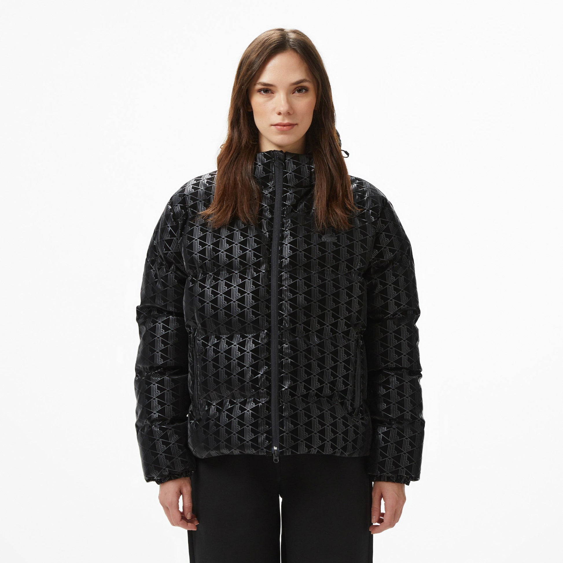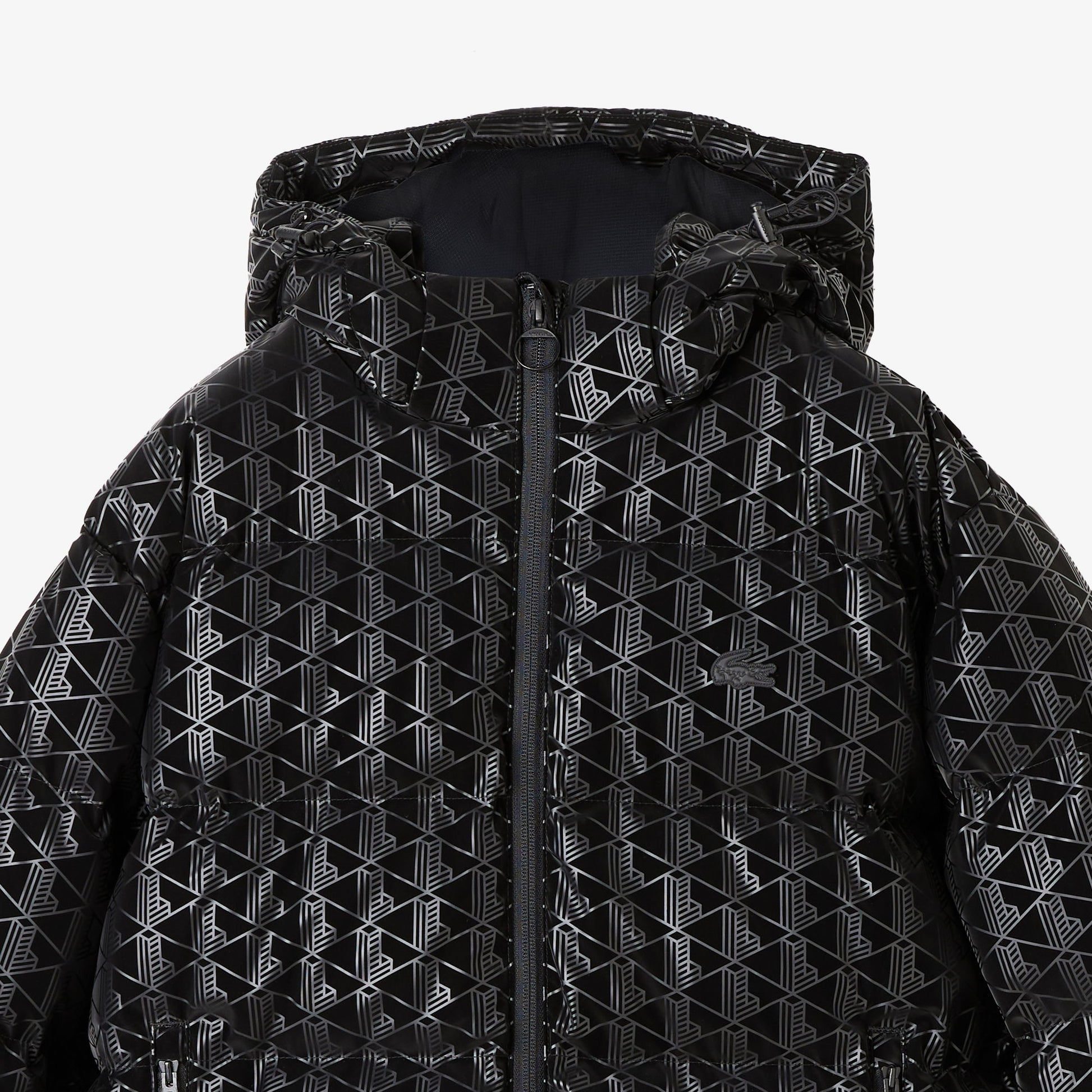 Lacoste Kadın Kapüşonlu Monogram Siyah Mont