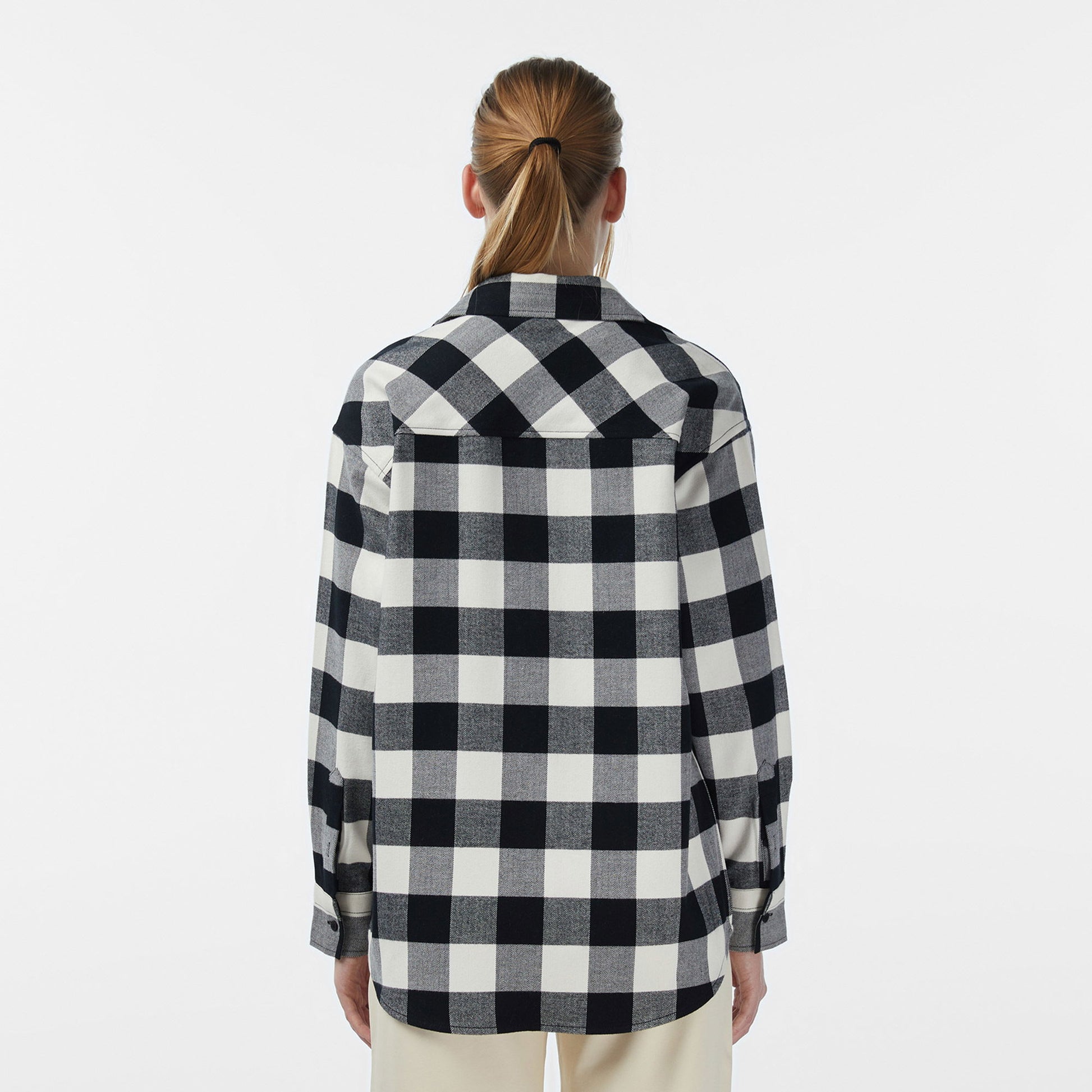Kareli desenin dikkat çekici tarzını yansıtan uzun kollu gömlek, sade detaylarla hareketlendirilmiş klasik bir görünüme sahiptir. Düğmeli yaka tasarımı, genel silueti tamamlayan zarif bir dokunuş sunar. Siyah ve beyaz kontrastıyla öne çıkan kareli desen, günlük kombinlerde güçlü bir ifade yaratmak isteyenler için ideal bir tercihtir. Farklı pantolonlarla kolayca uyum sağlar ve her ortamda stil sahibi bir görünüm sunar.