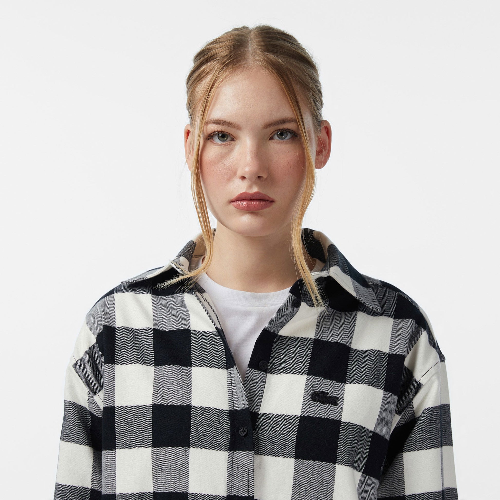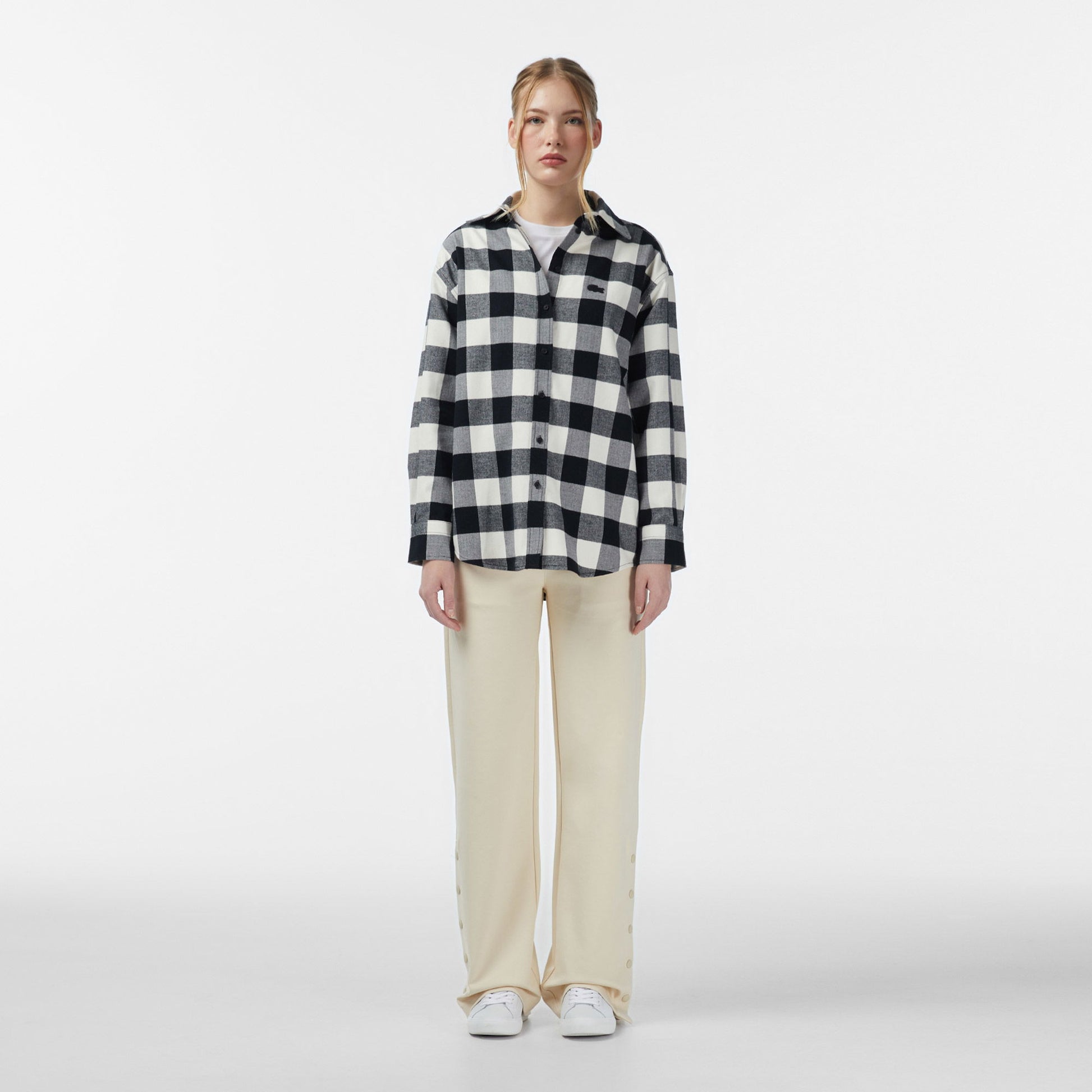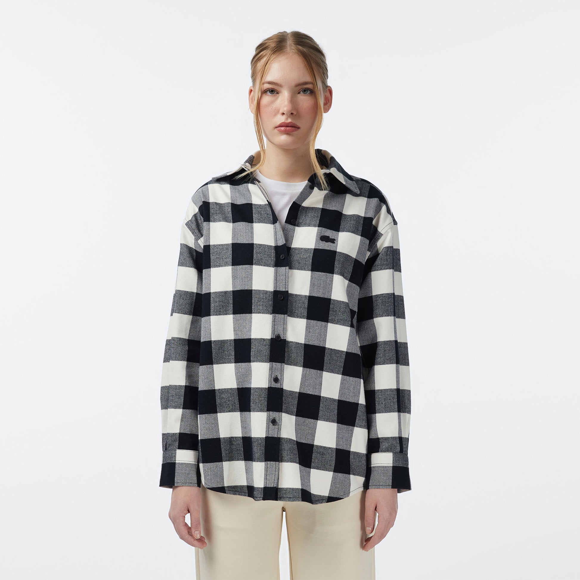 Lacoste Kadın Kareli Siyah Gömlek